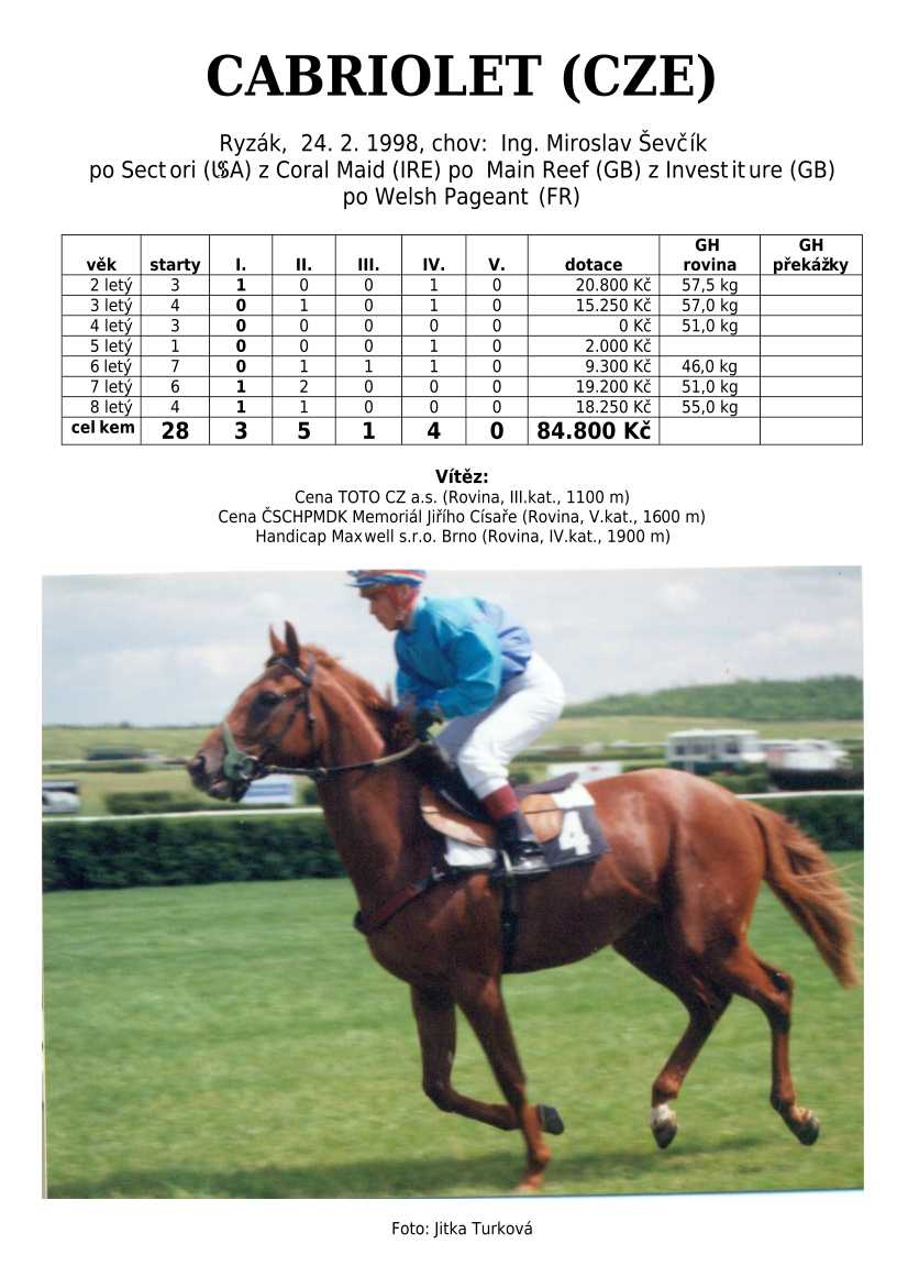 Trendem se ukazuje importování hotových koní. Stáda chovných klisen se stále tenčí, i když loňské úspěchy českých odchovanců byly excelentní, ale to už je jiná kapitola...