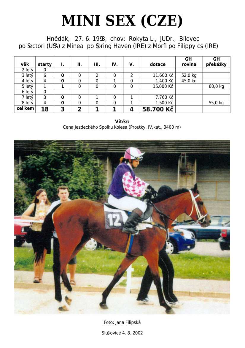 Takový miláček, jako je hrdina Velké pardubické steeplechase, SEXY LORD se u svého otce EGERTON objeví, až bude definitivně v dostihovém důchodu. Za sebe doufám, že se zcela uzdraví ze zranění a opět budeme moci bez dechu sledovat, jak se pere o vítězství. Nejen Sexy Lordovi, ale hlavně celému týmu kolem trénérky Růžičkové držím palce.