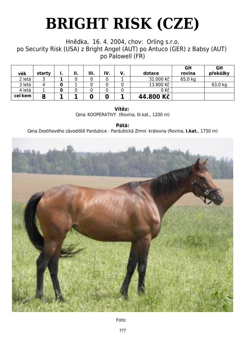 Větší využití v Polsku se najde i pro loňského novice Nagano Gold. Zda-li se po 2 letech do českého chovu vrátí, to už ukáže vývoj chovu.