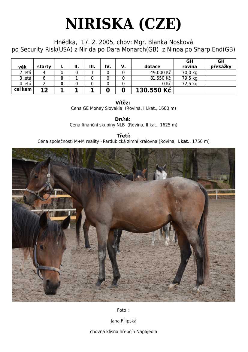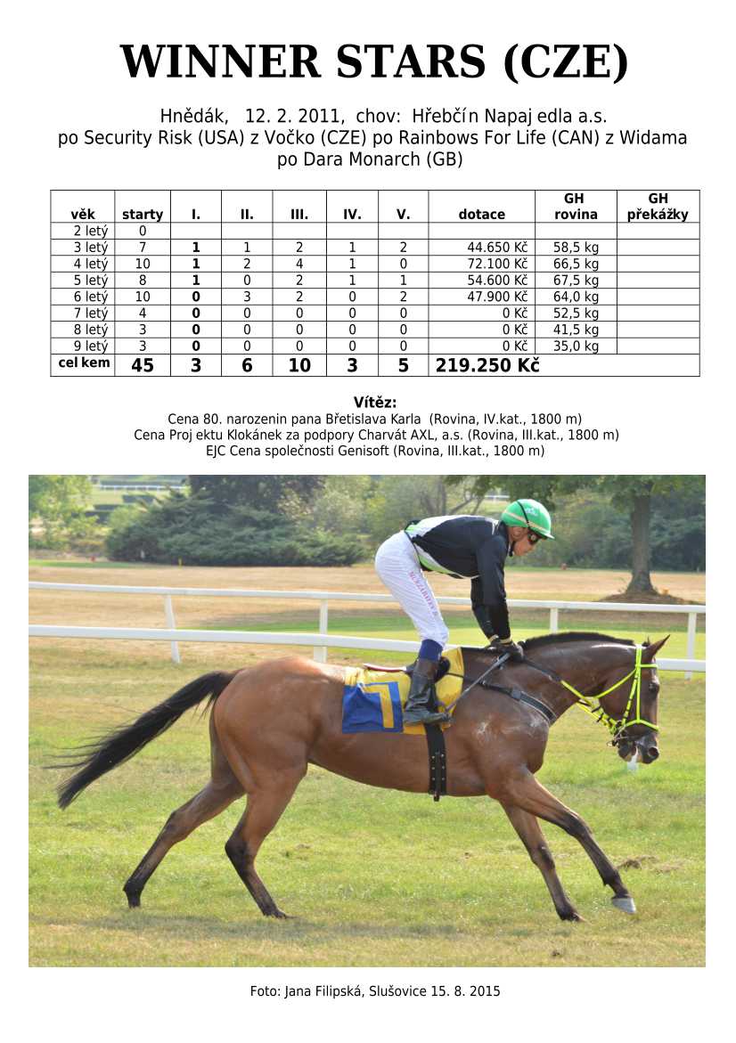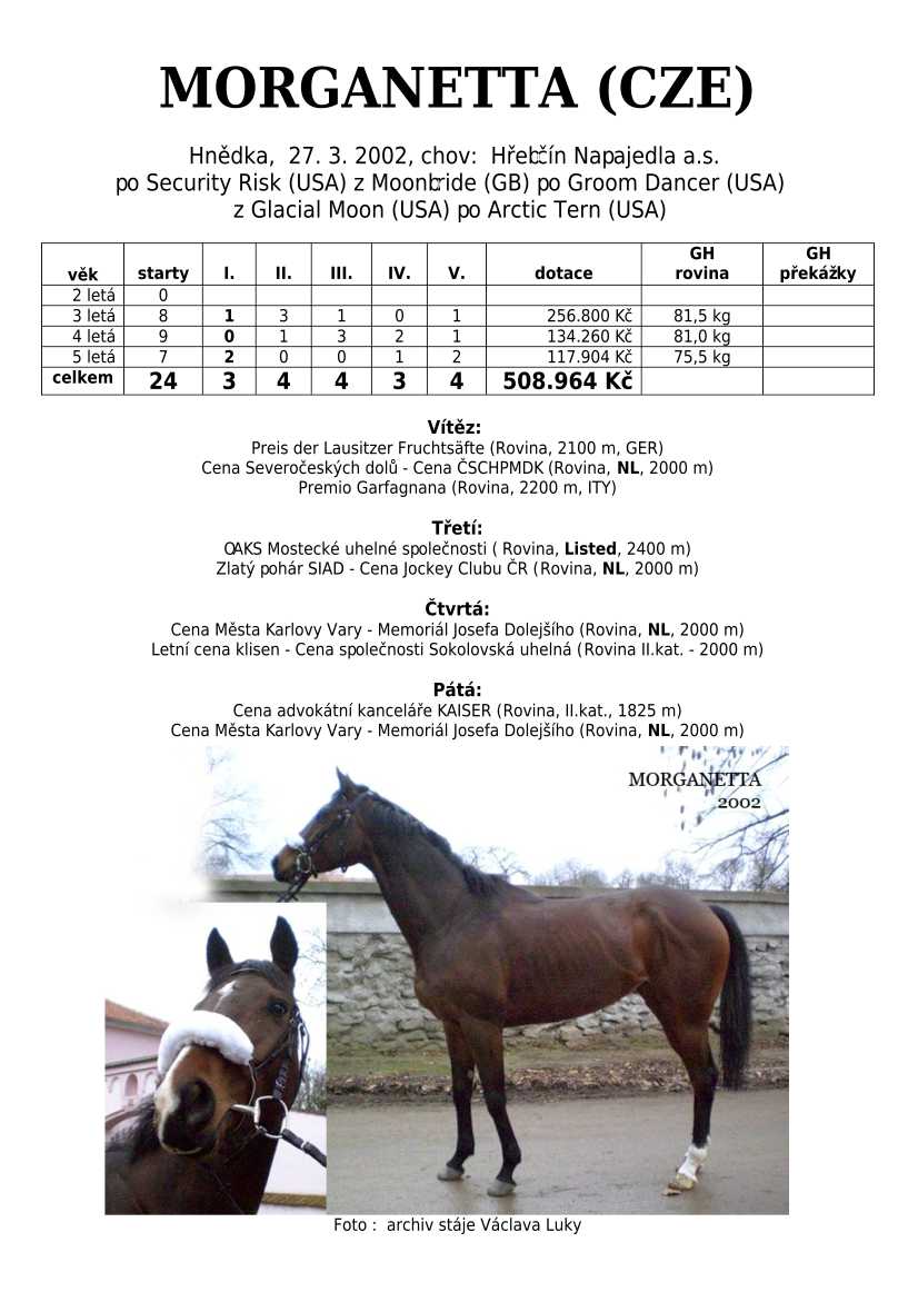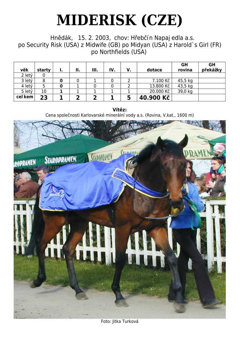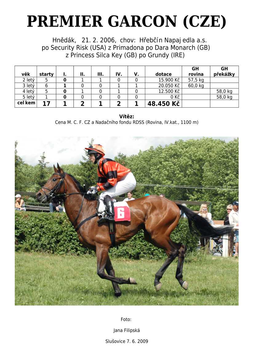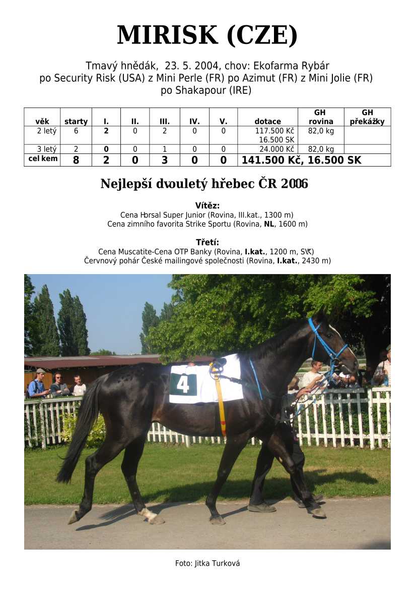 Ke konci dostihové sezóny jsem se pustila do aktualizace výsledků vítězných potomků. Každý plemeník bude mít své potomky na hlavní stránce, bez dalšího vyhledávání a klikání. Vše bude přehlednější, ale aktualizace bude z časových důvodů postupná. Přidáváni jsou potomci s ukončenou dostihovou kariérou.