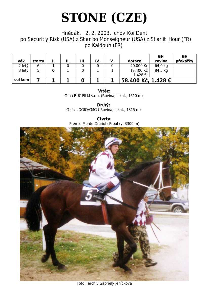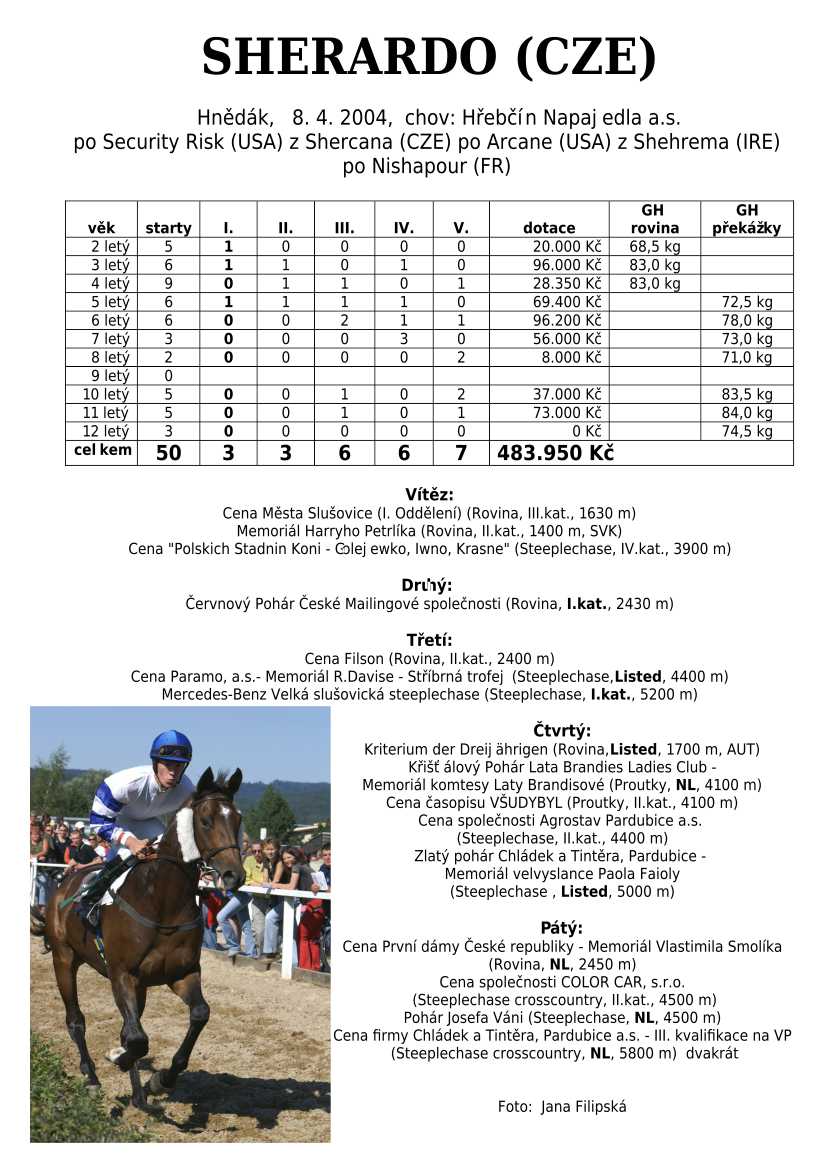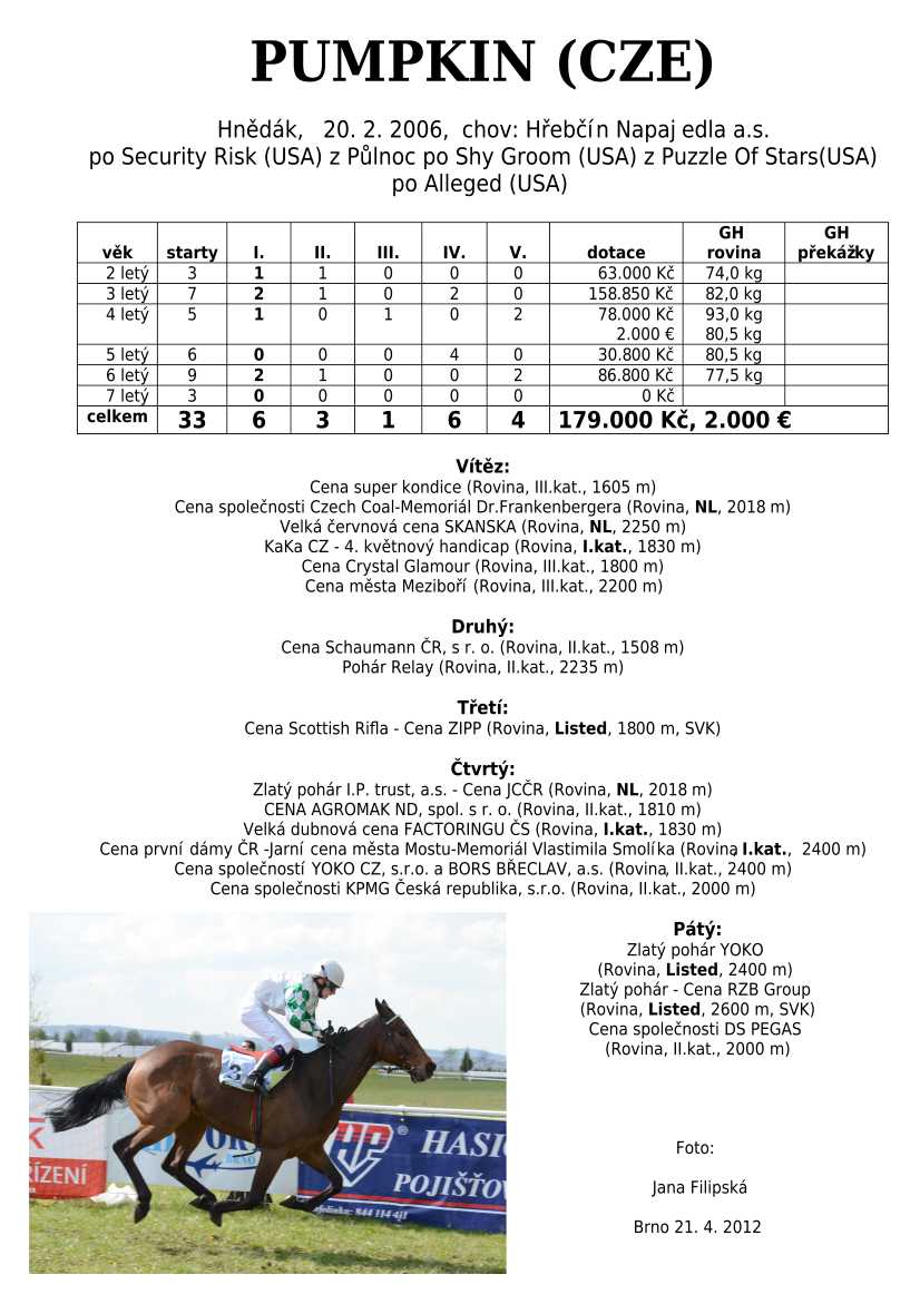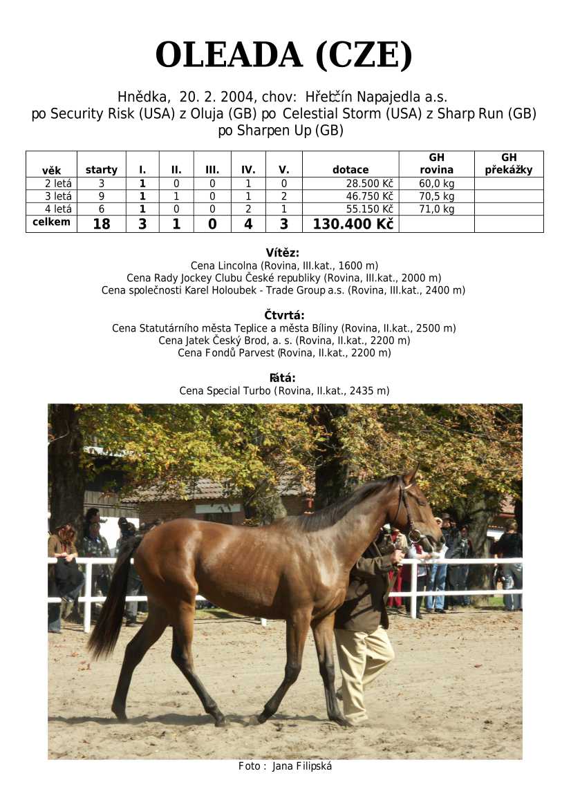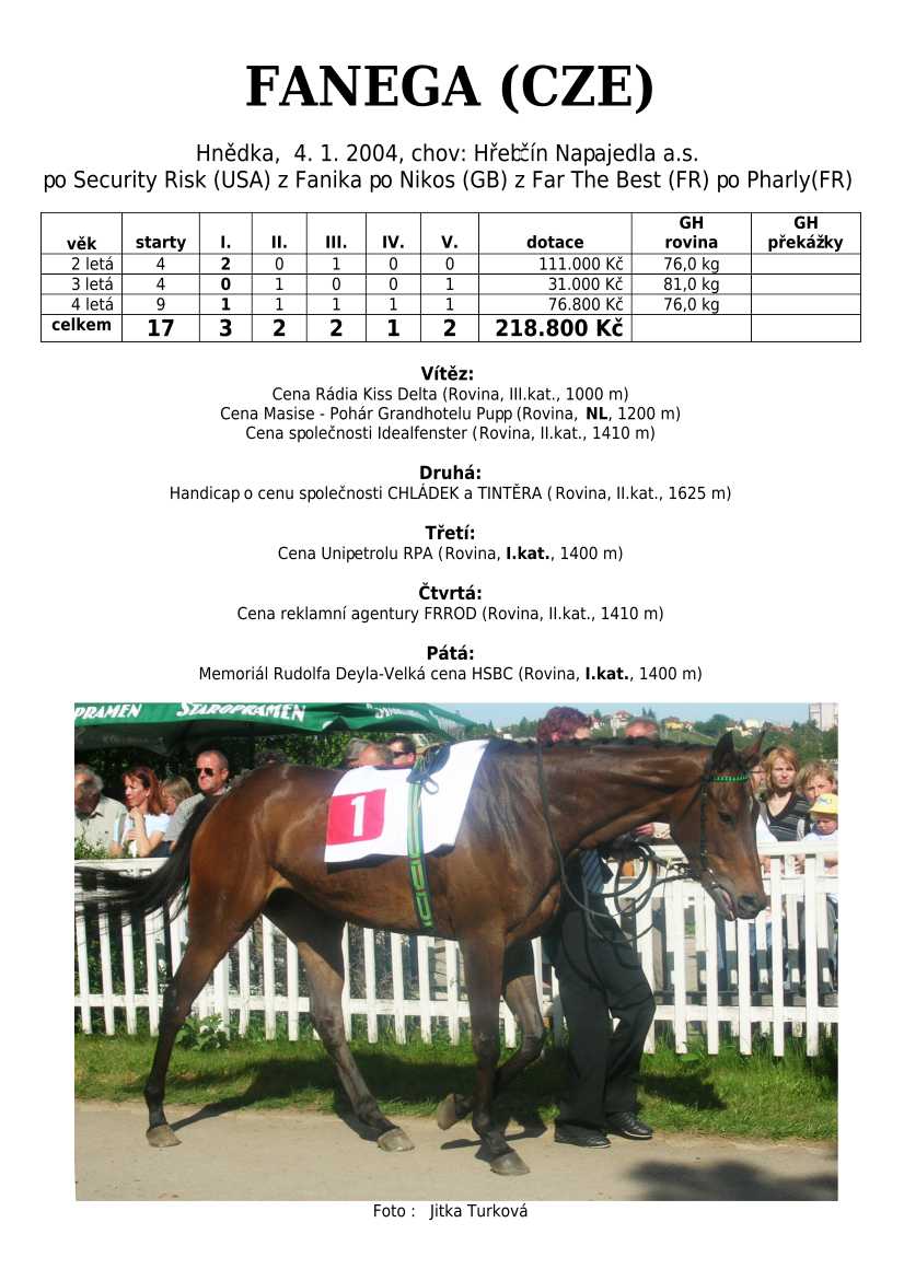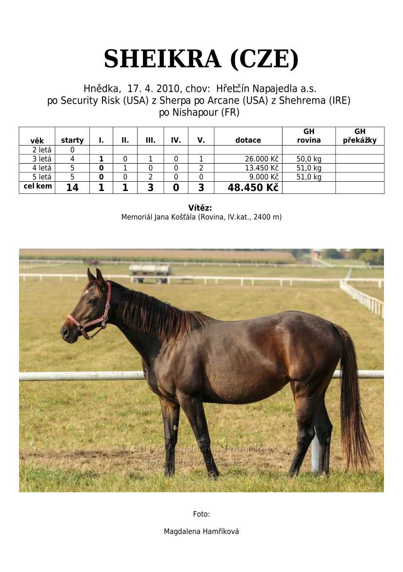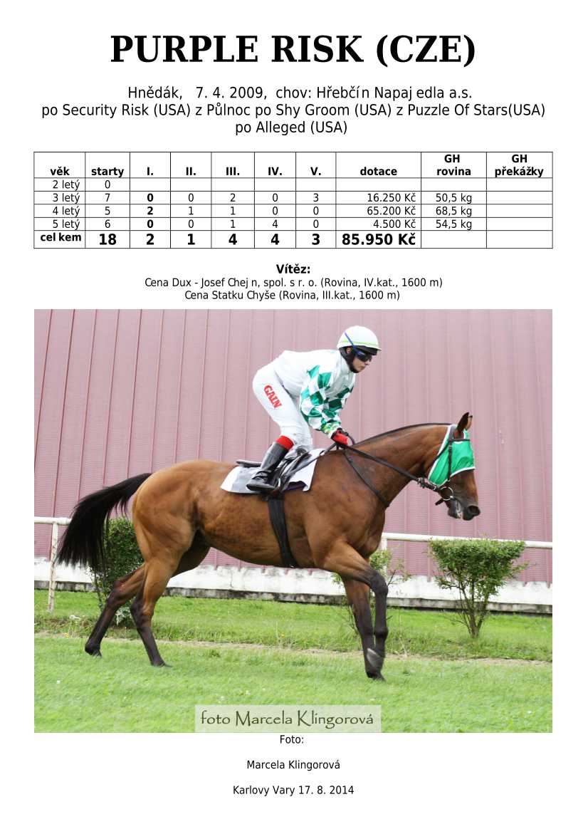 Ke konci dostihové sezóny jsem se pustila do aktualizace výsledků vítězných potomků. Každý plemeník bude mít své potomky na hlavní stránce, bez dalšího vyhledávání a klikání. Vše bude přehlednější, ale aktualizace bude z časových důvodů postupná. Přidáváni jsou potomci s ukončenou dostihovou kariérou.