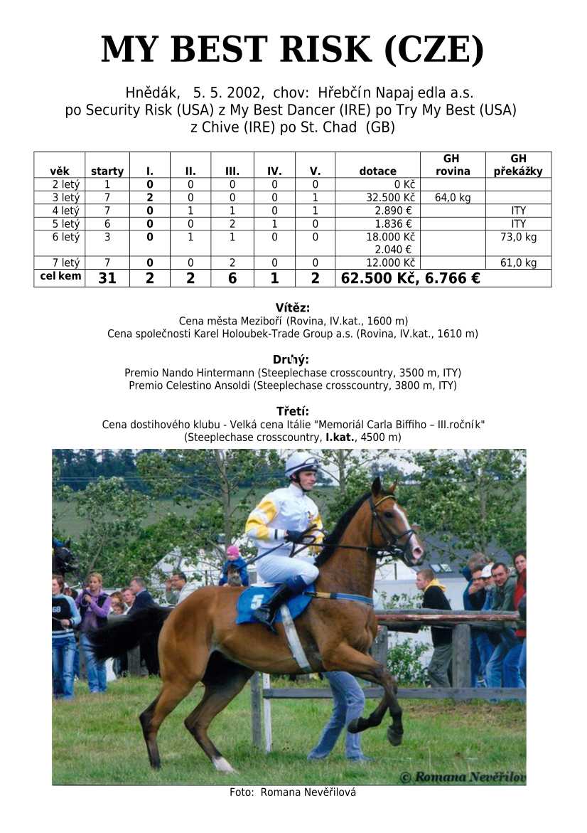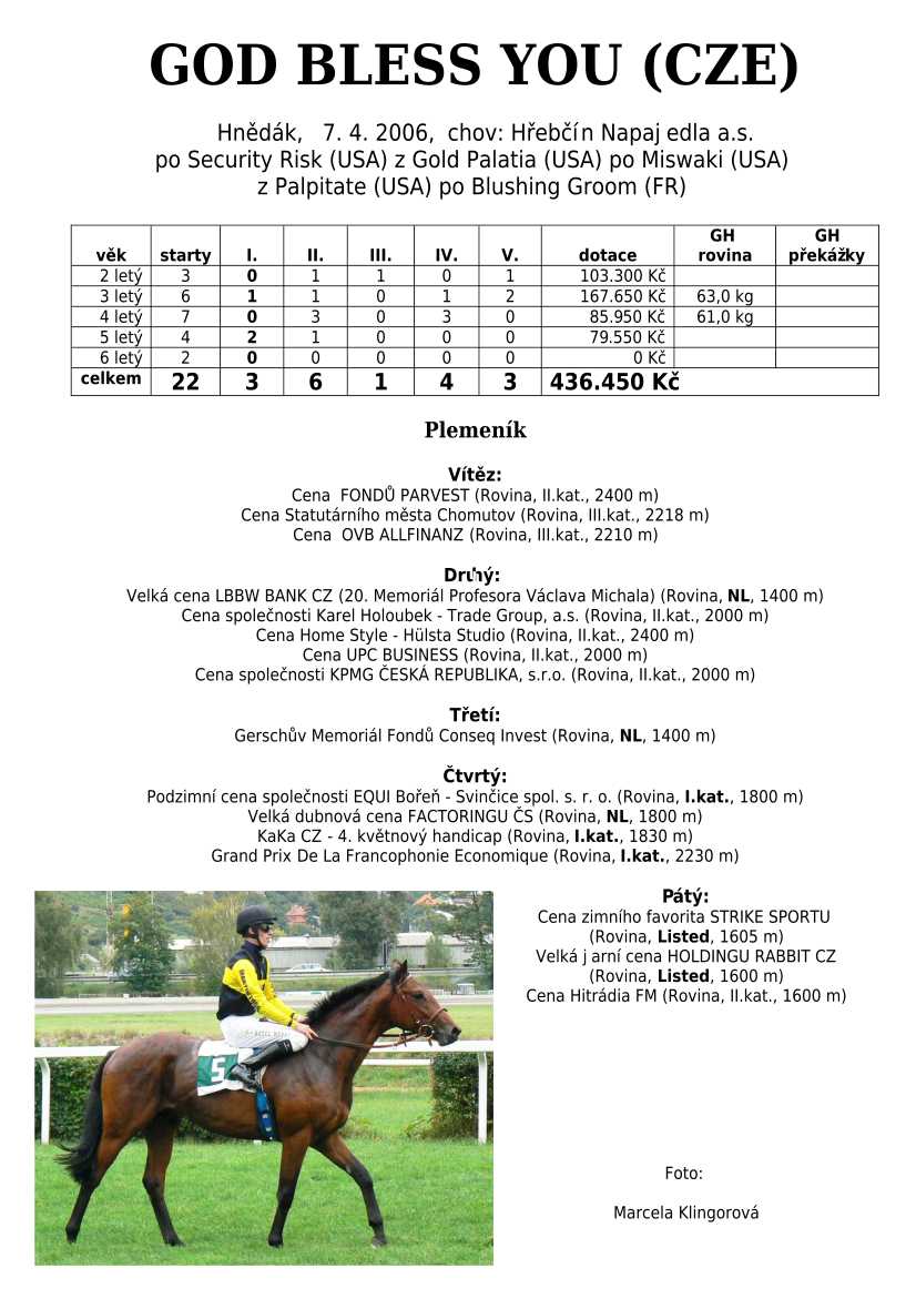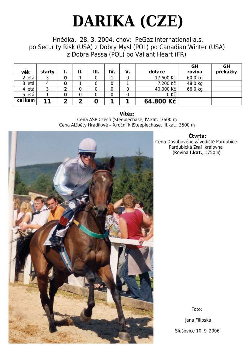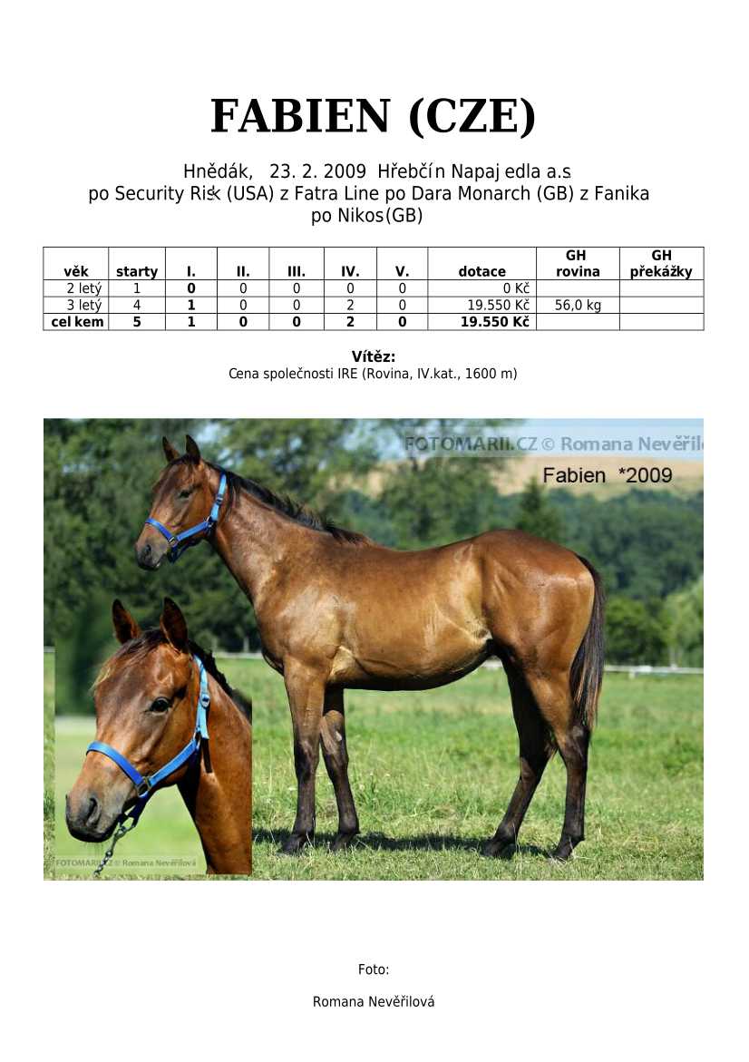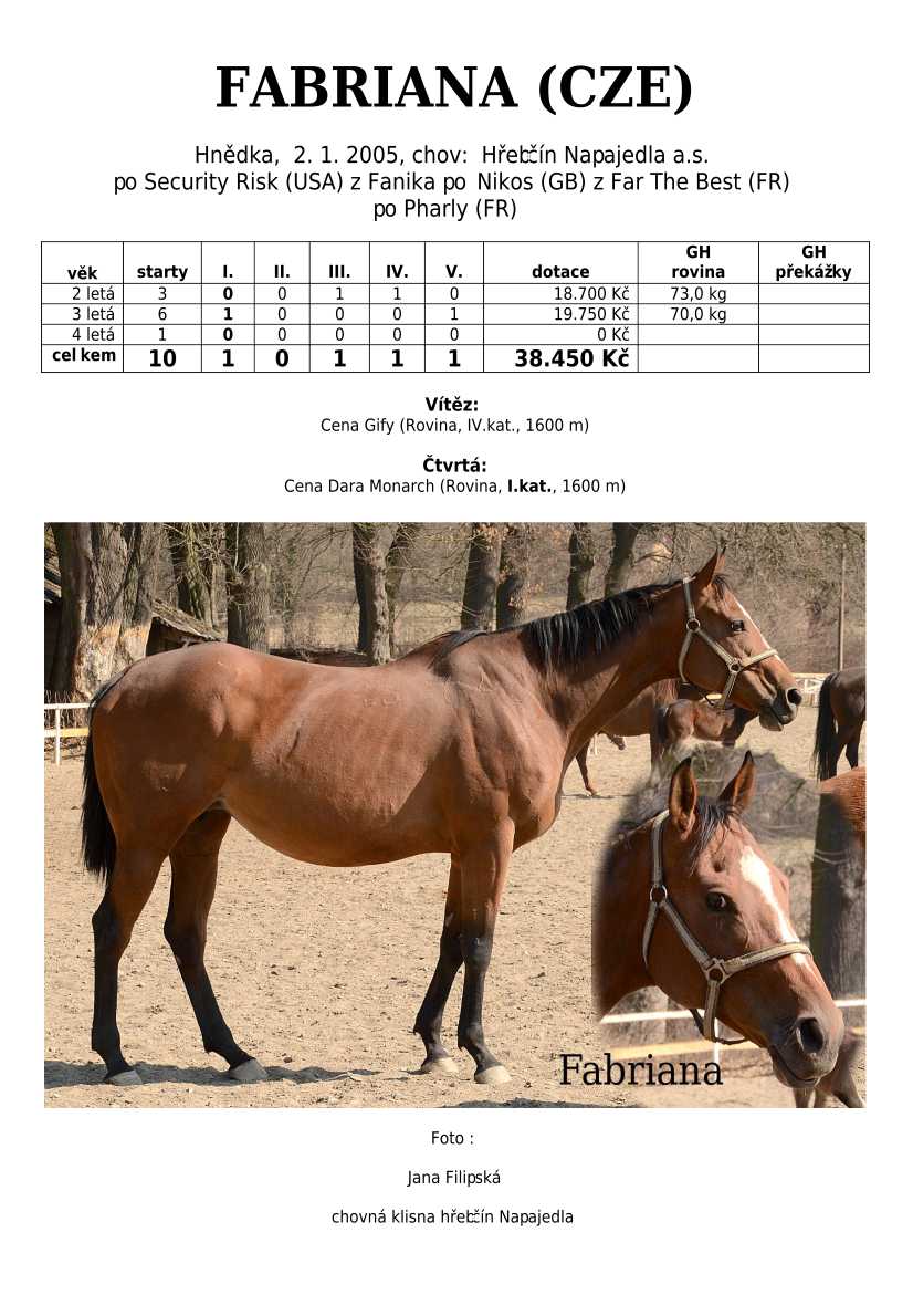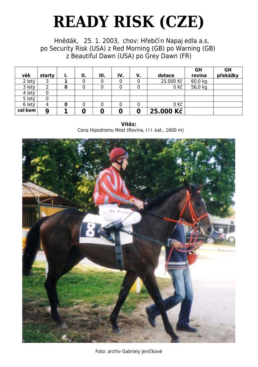 Ke konci dostihové sezóny jsem se pustila do aktualizace výsledků vítězných potomků. Každý plemeník bude mít své potomky na hlavní stránce, bez dalšího vyhledávání a klikání. Vše bude přehlednější, ale aktualizace bude z časových důvodů postupná. Přidáváni jsou potomci s ukončenou dostihovou kariérou.