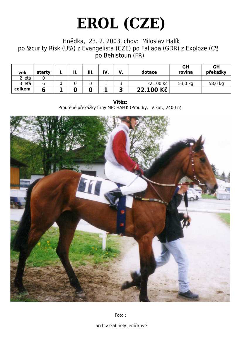 Český chovatel se dočkal. Po dlouhých 22 letech získal titul KONĚ ROKU ČR 2022 český odchovanec Petra Karlíka GASPARINI (Eagle Top). Vítěz slovenského Derby, českého i slovenského St.Leger. Kromě titulu nejvyššího byl vyhodnocen Nejlepším koněm českého chovu, nejlepším tříletým hřebcem českým i slovenským.