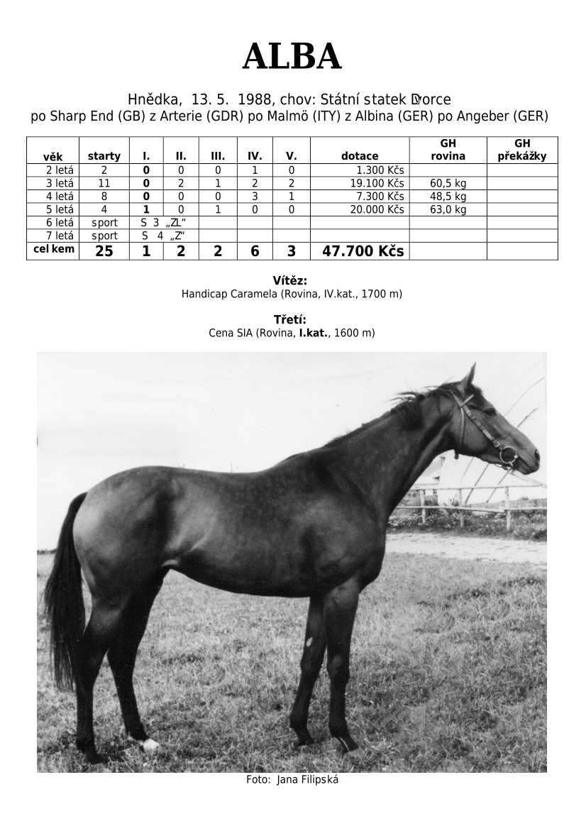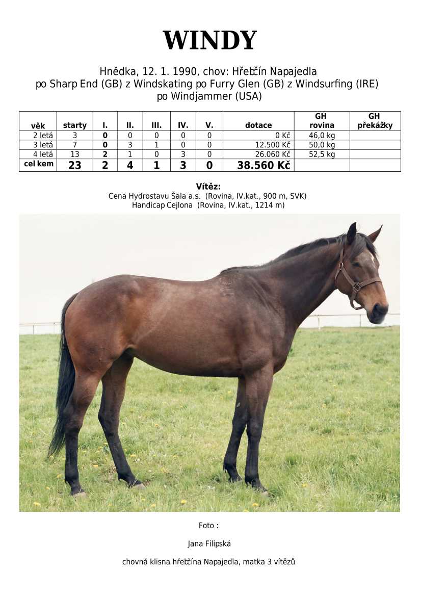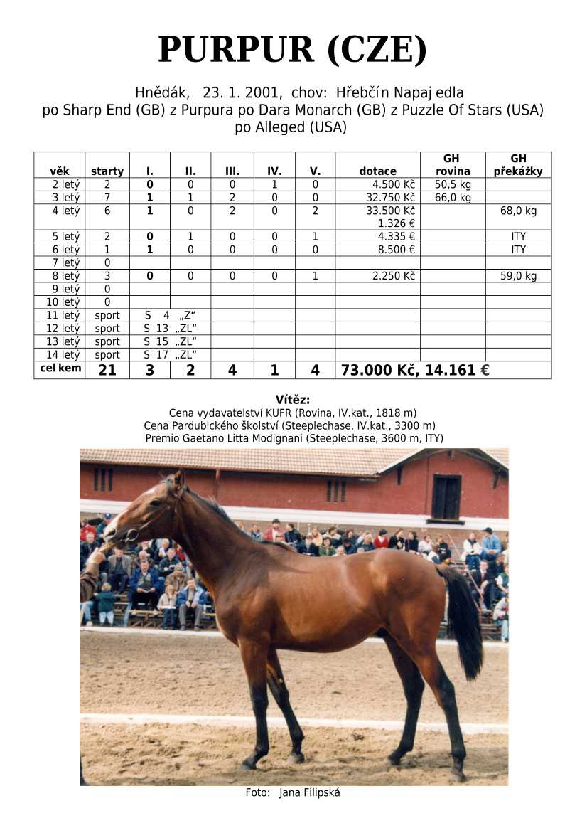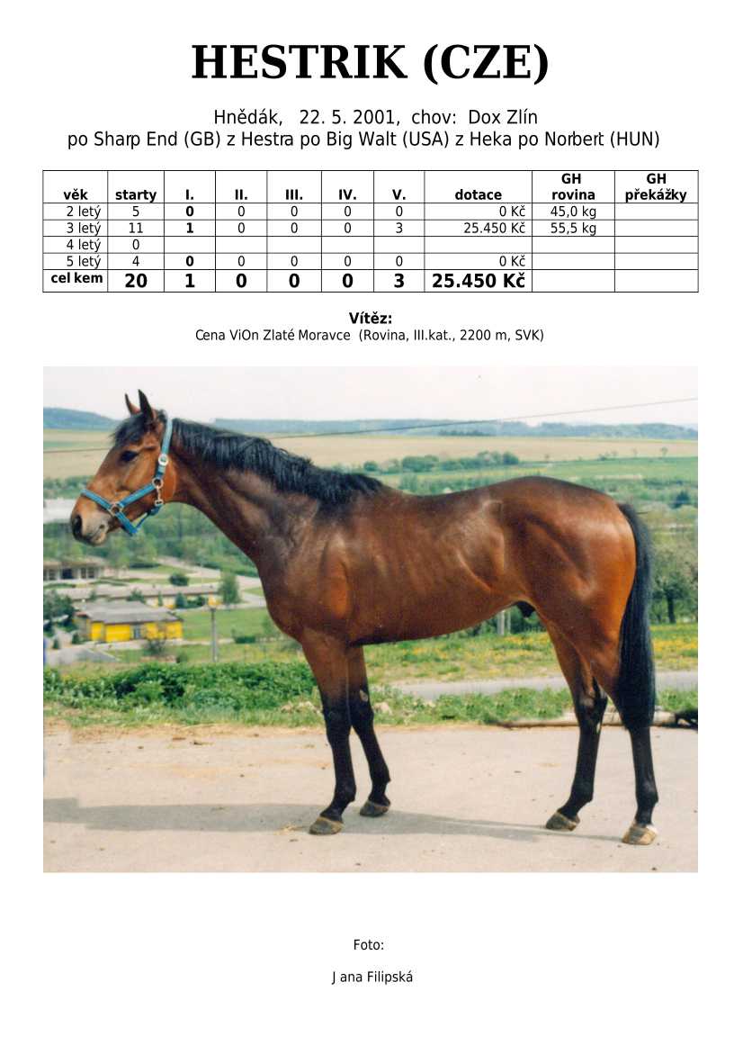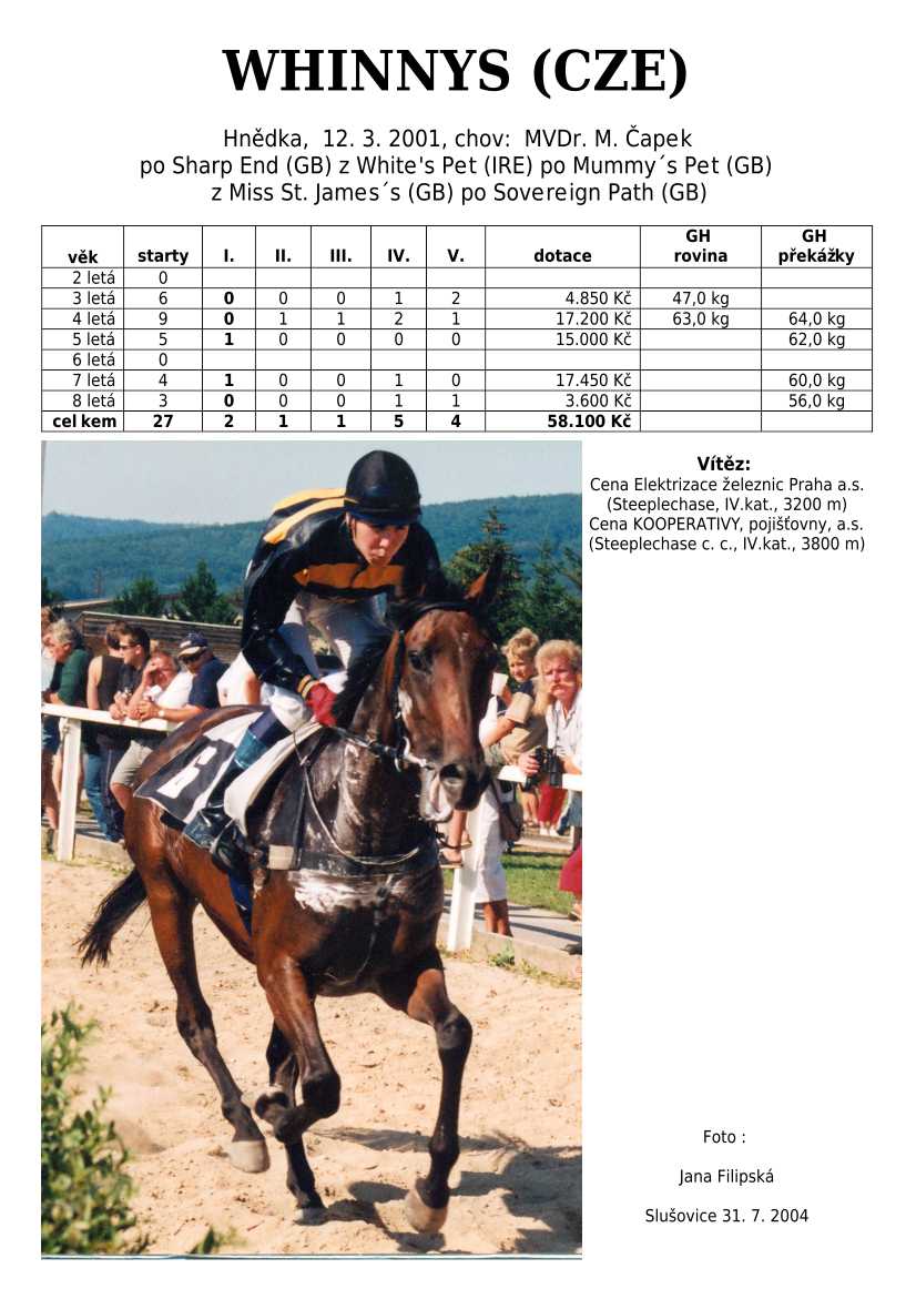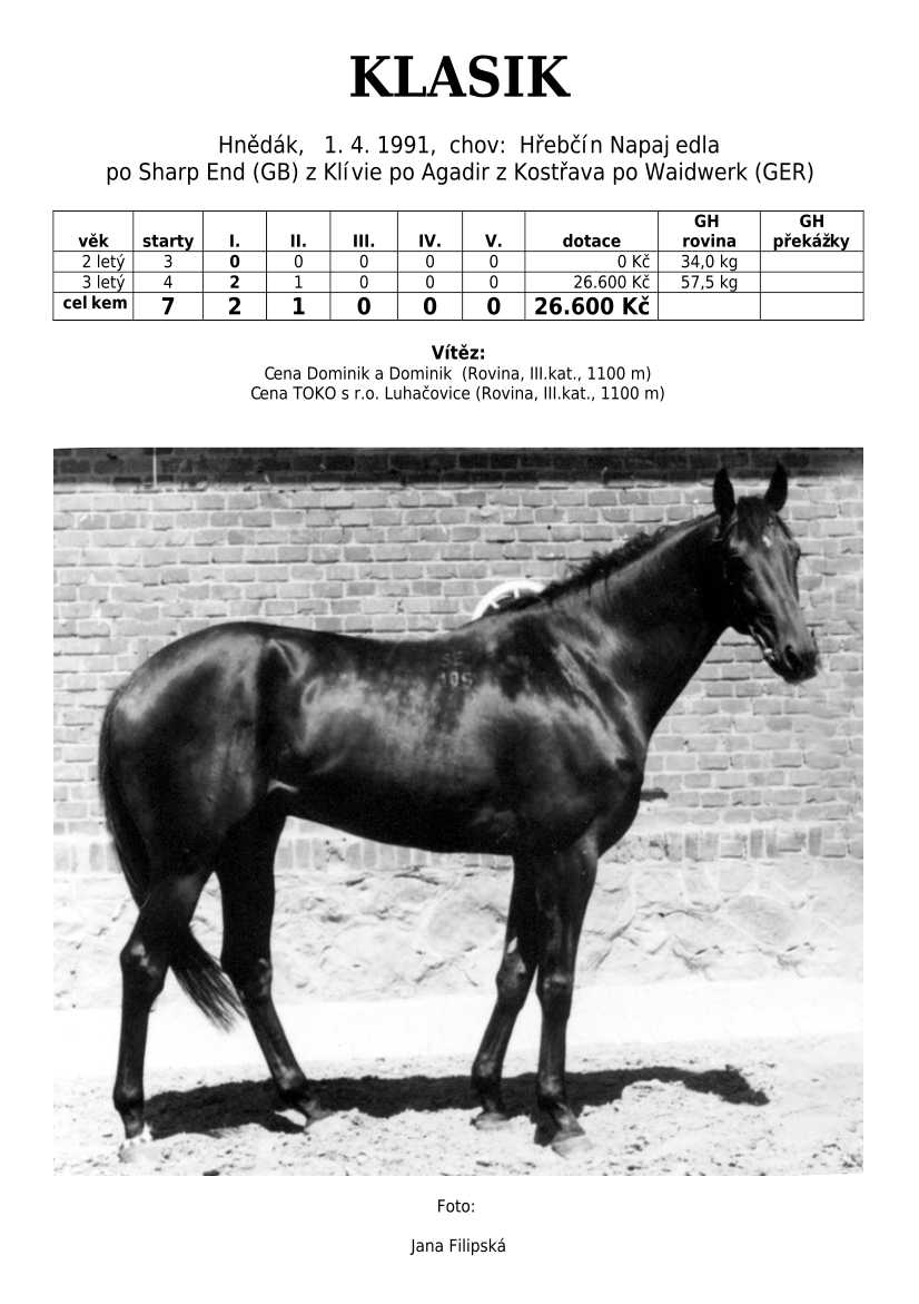 Ke konci dostihové sezóny jsem se pustila do aktualizace výsledků vítězných potomků. Každý plemeník bude mít své potomky na hlavní stránce, bez dalšího vyhledávání a klikání. Vše bude přehlednější, ale aktualizace bude z časových důvodů postupná. Přidáváni jsou potomci s ukončenou dostihovou kariérou.