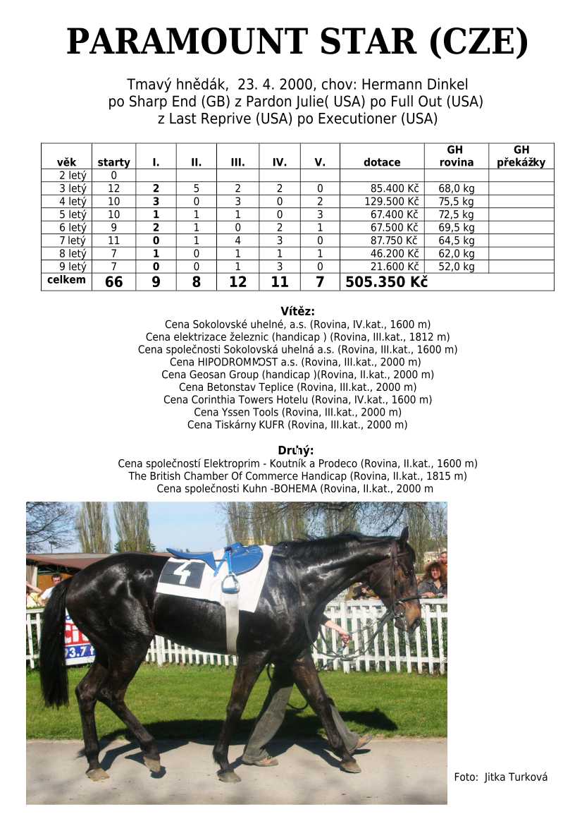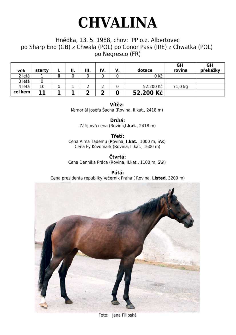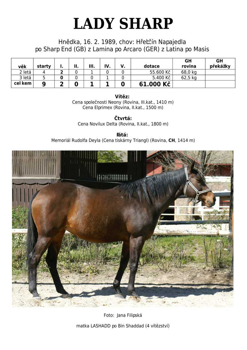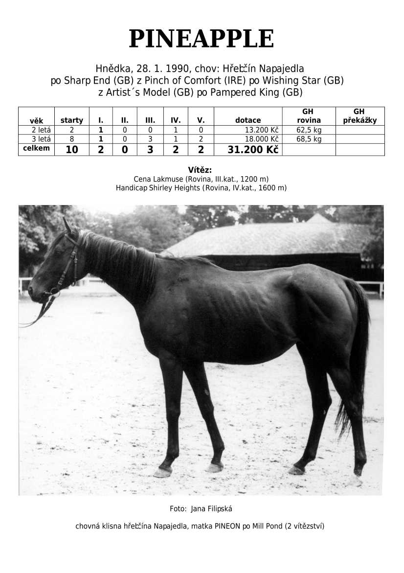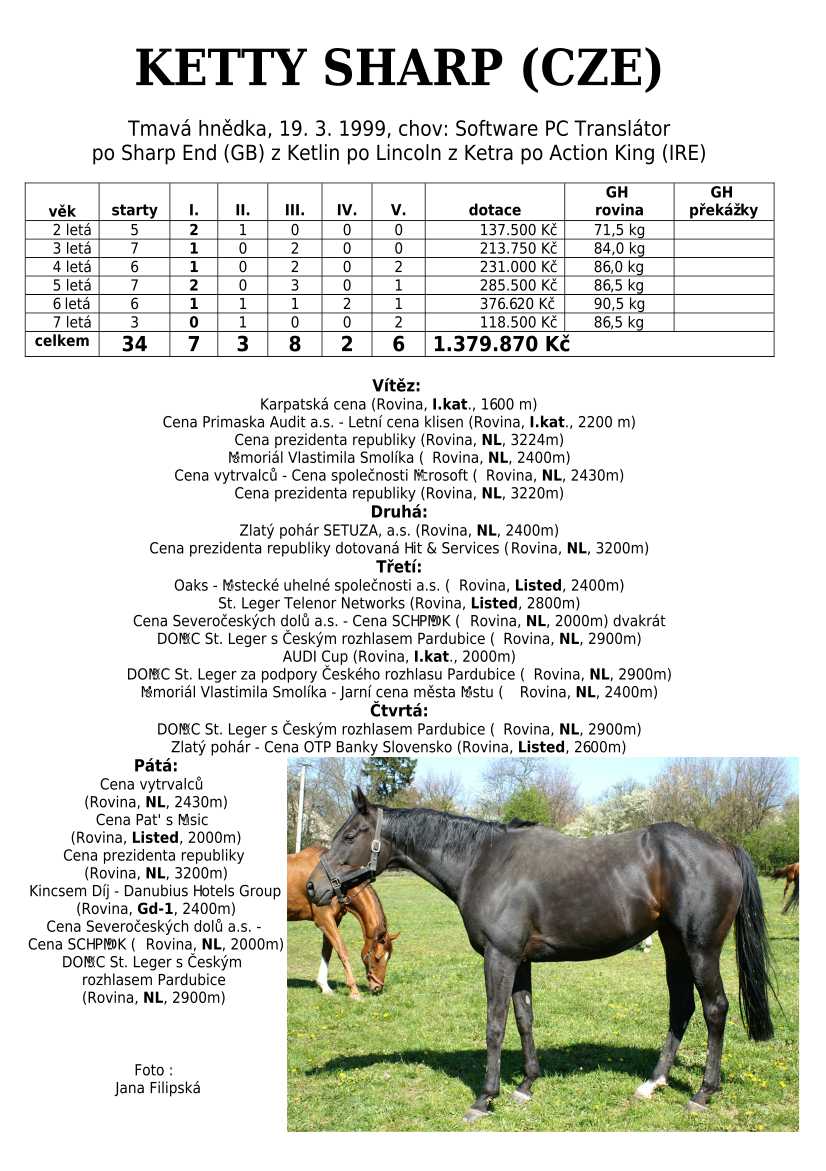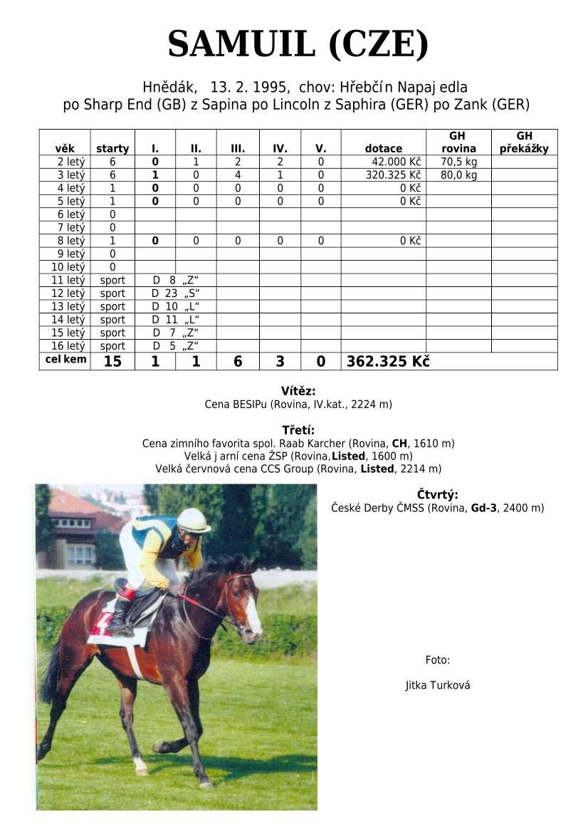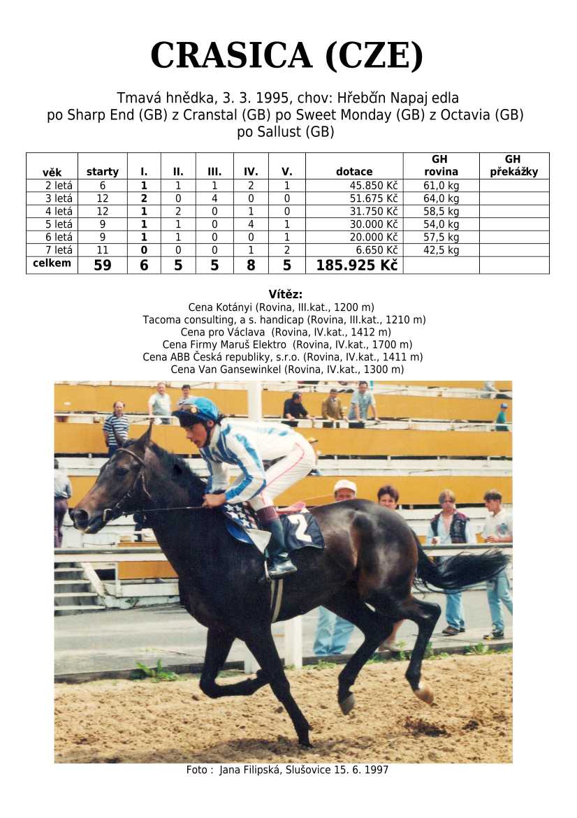 Ke konci dostihové sezóny jsem se pustila do aktualizace výsledků vítězných potomků. Každý plemeník bude mít své potomky na hlavní stránce, bez dalšího vyhledávání a klikání. Vše bude přehlednější, ale aktualizace bude z časových důvodů postupná. Přidáváni jsou potomci s ukončenou dostihovou kariérou.