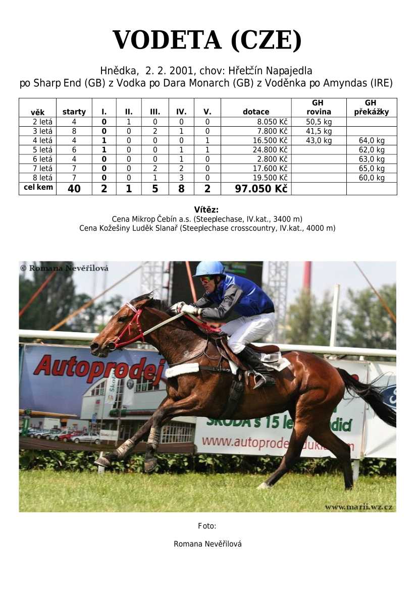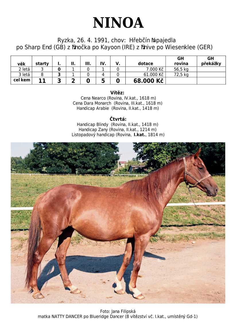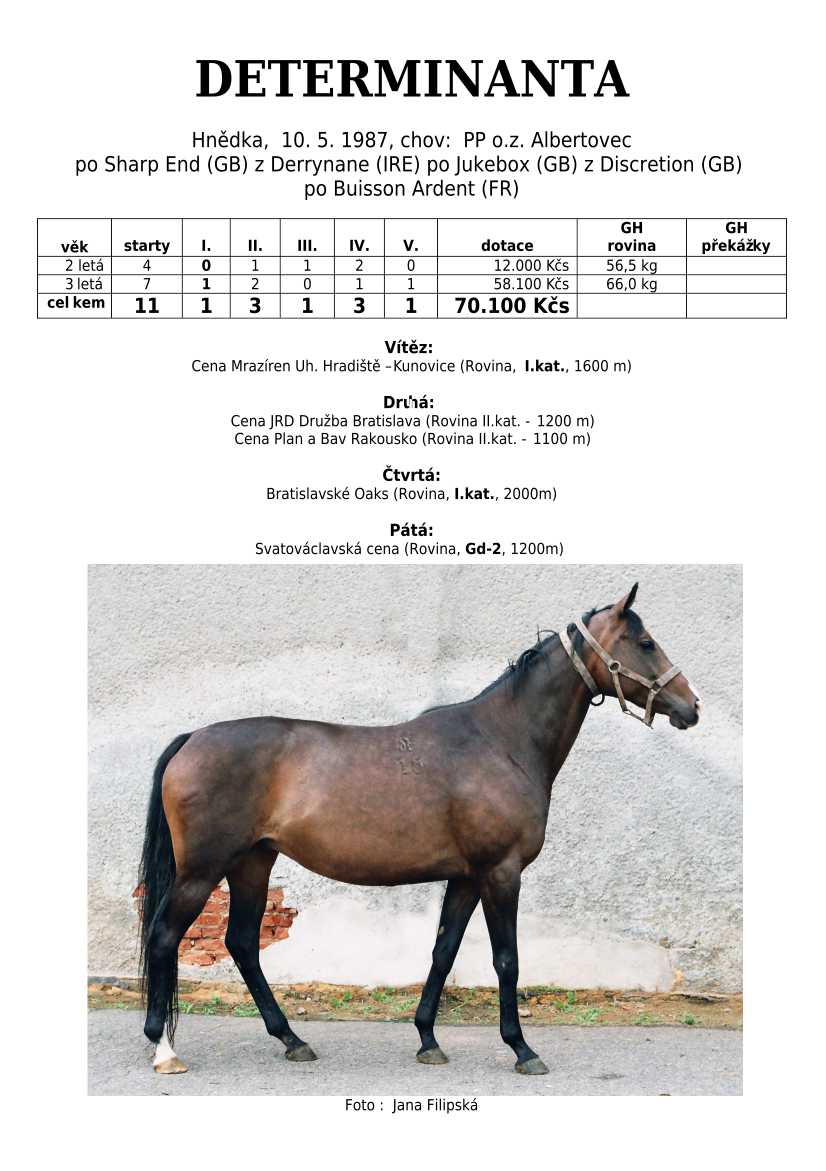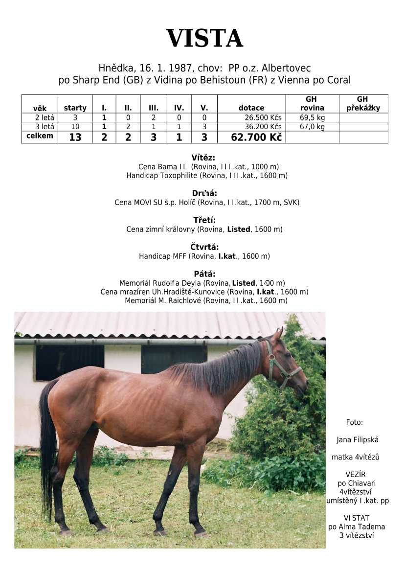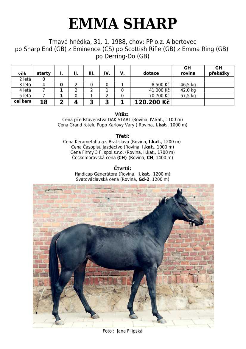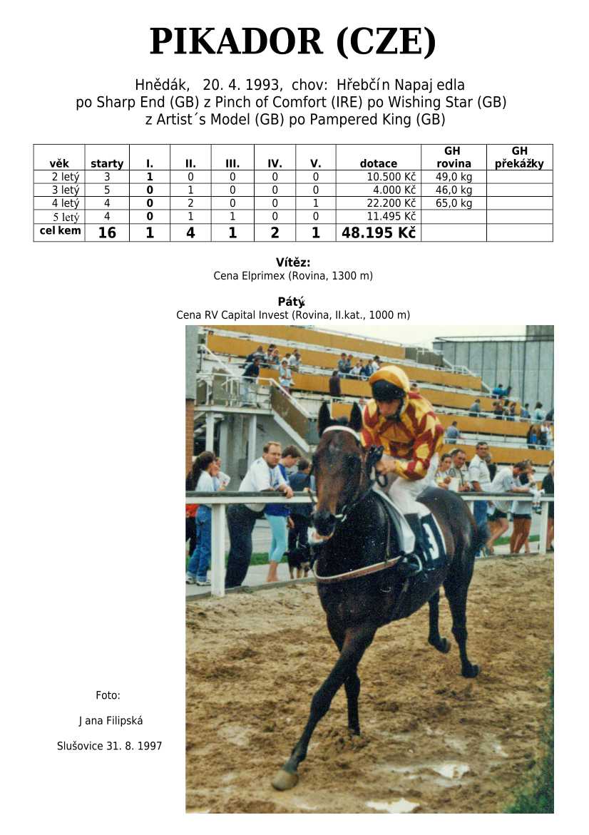 Ke konci dostihové sezóny jsem se pustila do aktualizace výsledků vítězných potomků. Každý plemeník bude mít své potomky na hlavní stránce, bez dalšího vyhledávání a klikání. Vše bude přehlednější, ale aktualizace bude z časových důvodů postupná. Přidáváni jsou potomci s ukončenou dostihovou kariérou.