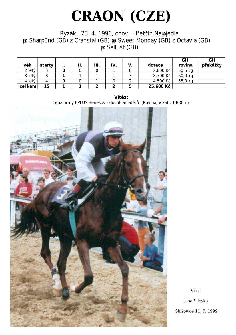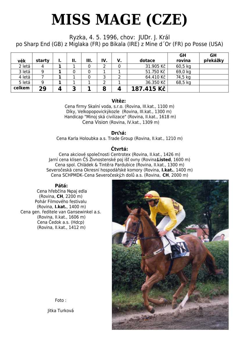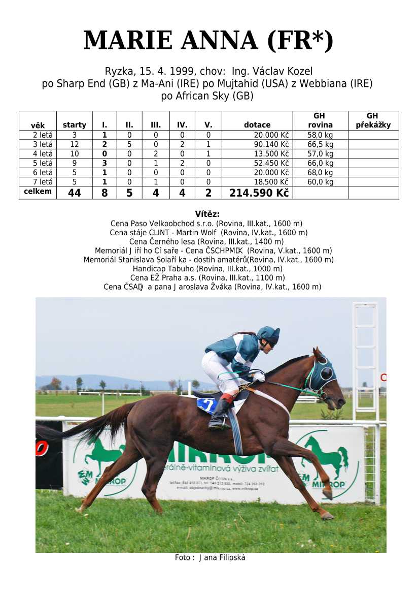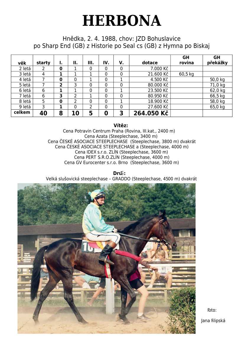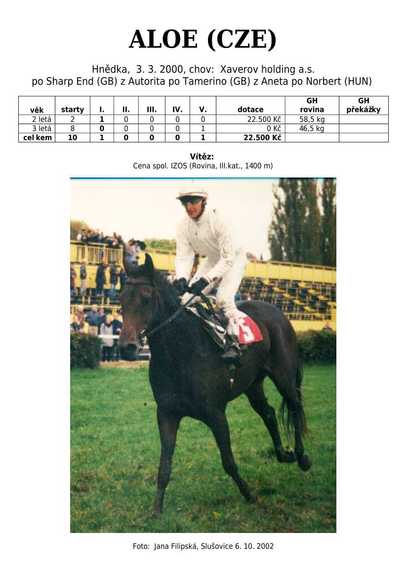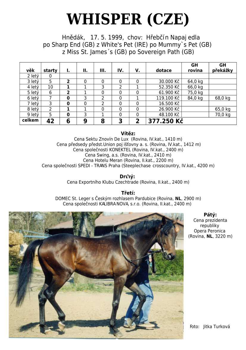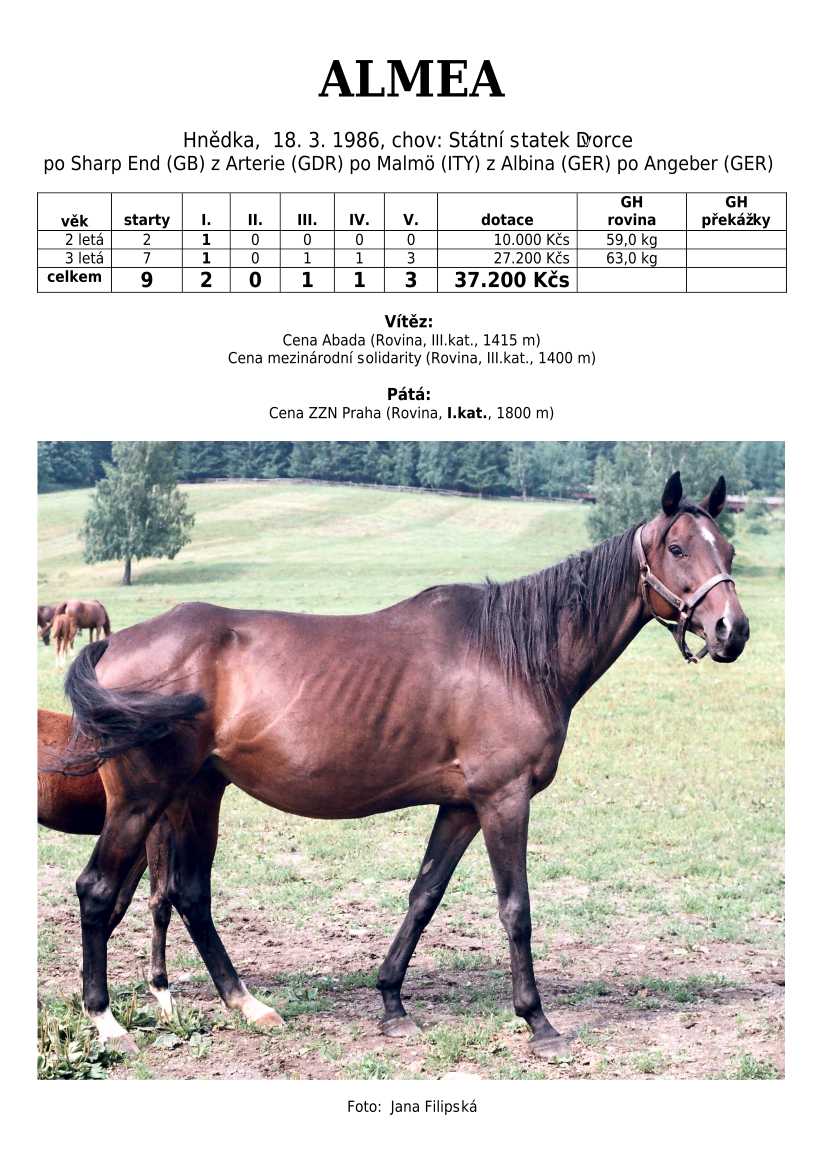 Ke konci dostihové sezóny jsem se pustila do aktualizace výsledků vítězných potomků. Každý plemeník bude mít své potomky na hlavní stránce, bez dalšího vyhledávání a klikání. Vše bude přehlednější, ale aktualizace bude z časových důvodů postupná. Přidáváni jsou potomci s ukončenou dostihovou kariérou.
