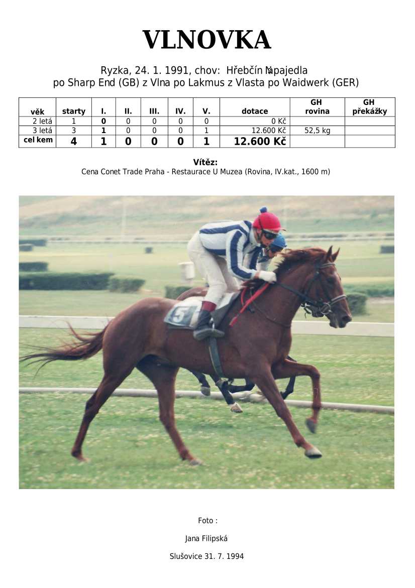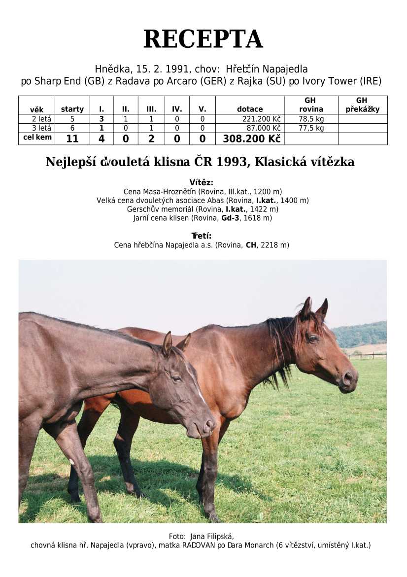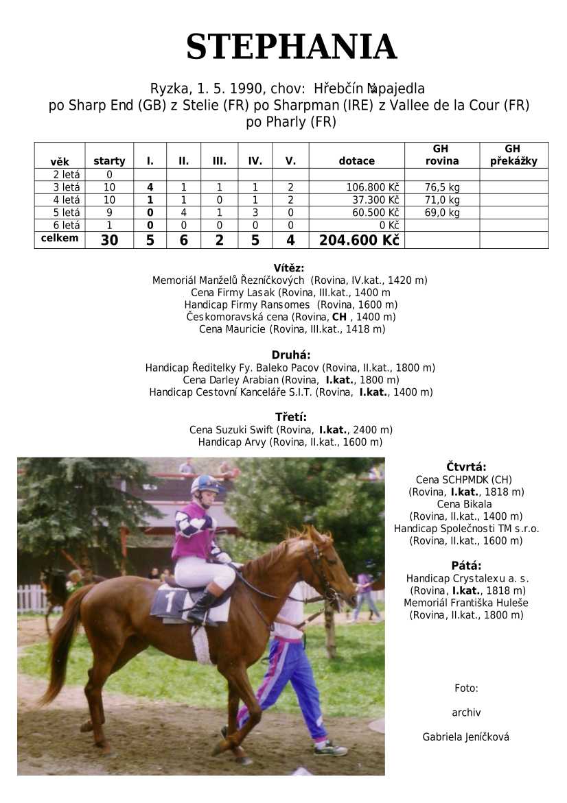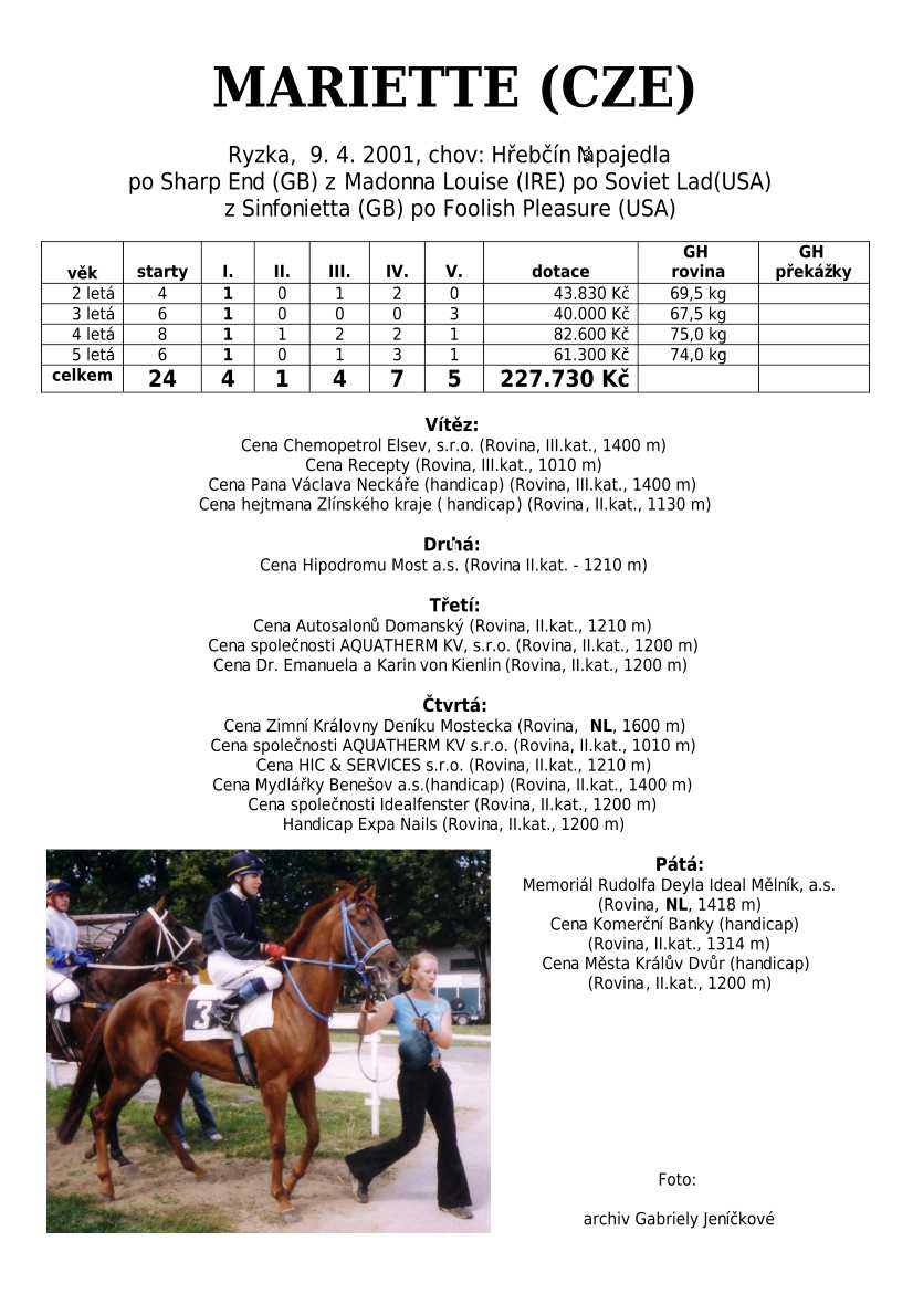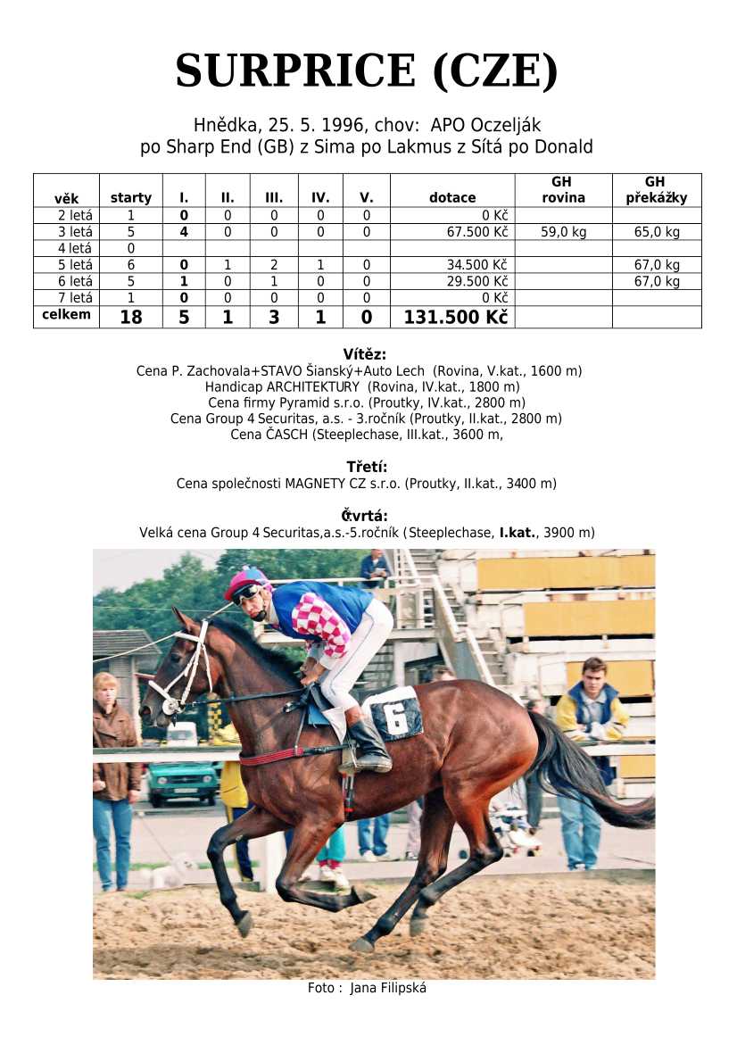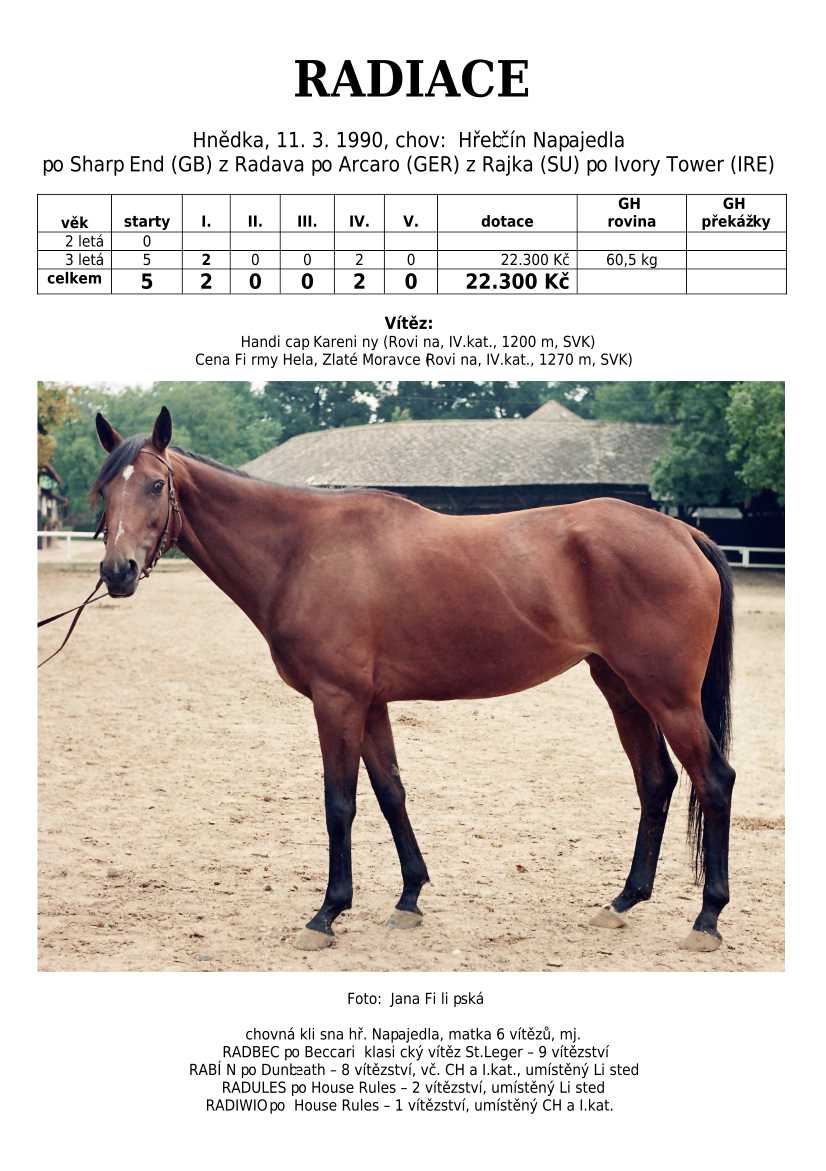 Ke konci dostihové sezóny jsem se pustila do aktualizace výsledků vítězných potomků. Každý plemeník bude mít své potomky na hlavní stránce, bez dalšího vyhledávání a klikání. Vše bude přehlednější, ale aktualizace bude z časových důvodů postupná. Přidáváni jsou potomci s ukončenou dostihovou kariérou.