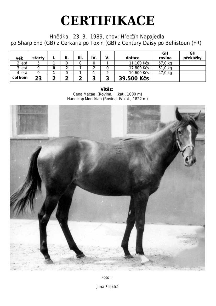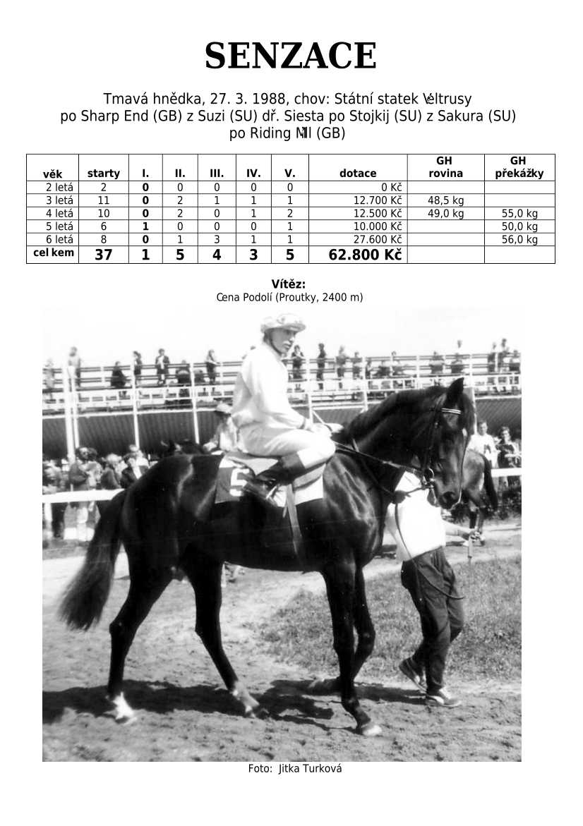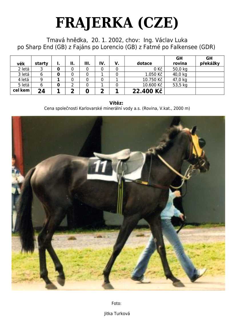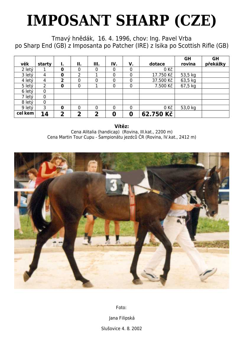 Trendem se ukazuje importování hotových koní. Stáda chovných klisen se stále tenčí, i když loňské úspěchy českých odchovanců byly excelentní, ale to už je jiná kapitola...
