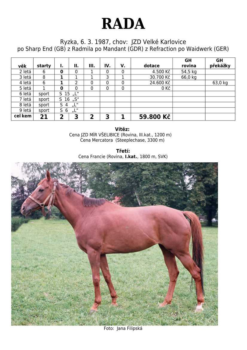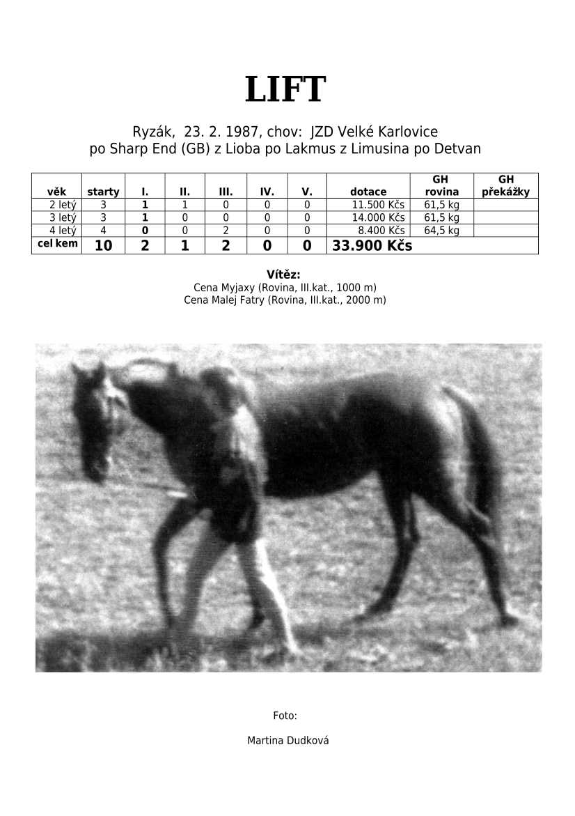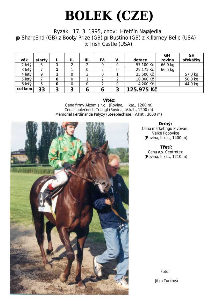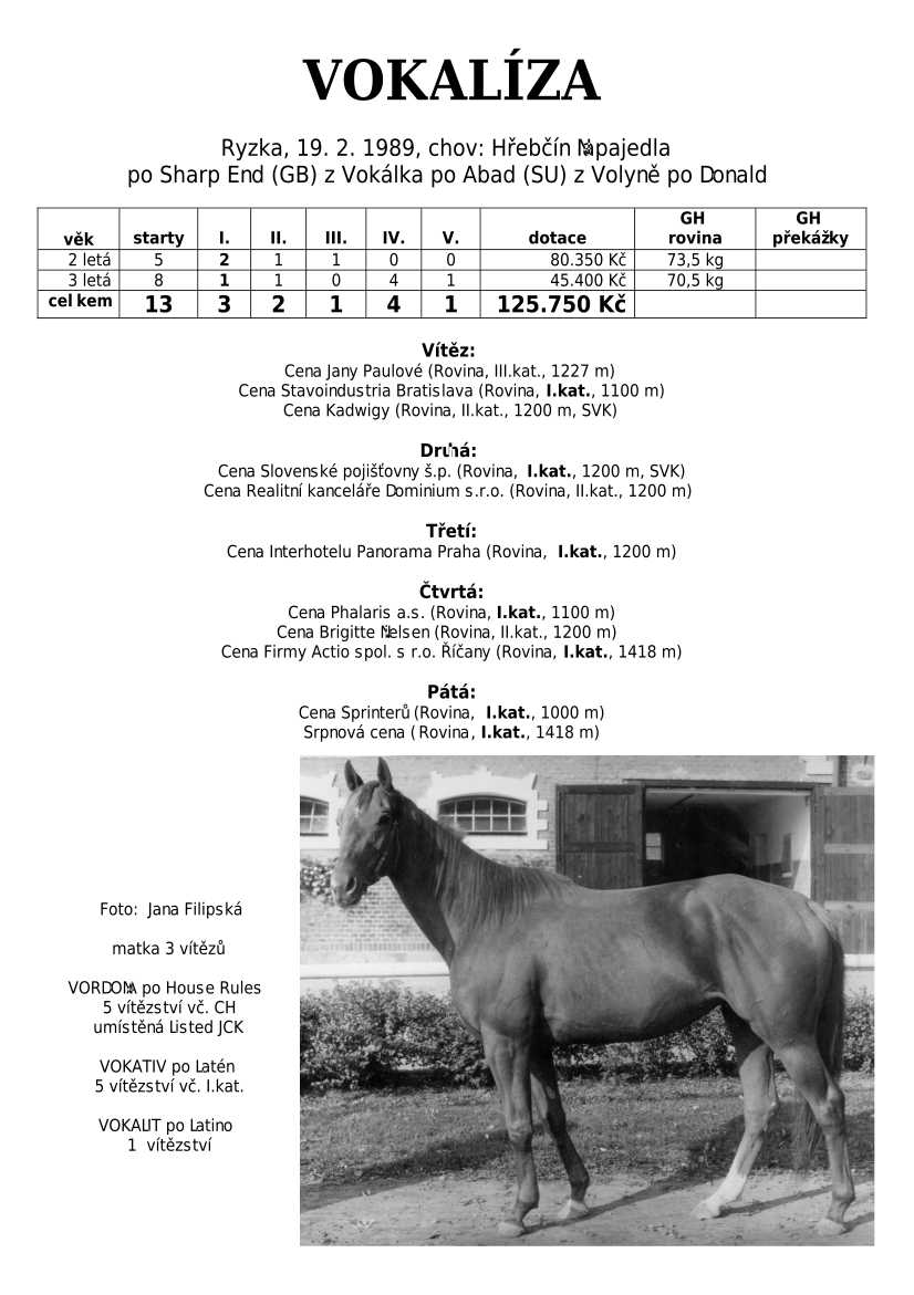 Trendem se ukazuje importování hotových koní. Stáda chovných klisen se stále tenčí, i když loňské úspěchy českých odchovanců byly excelentní, ale to už je jiná kapitola...