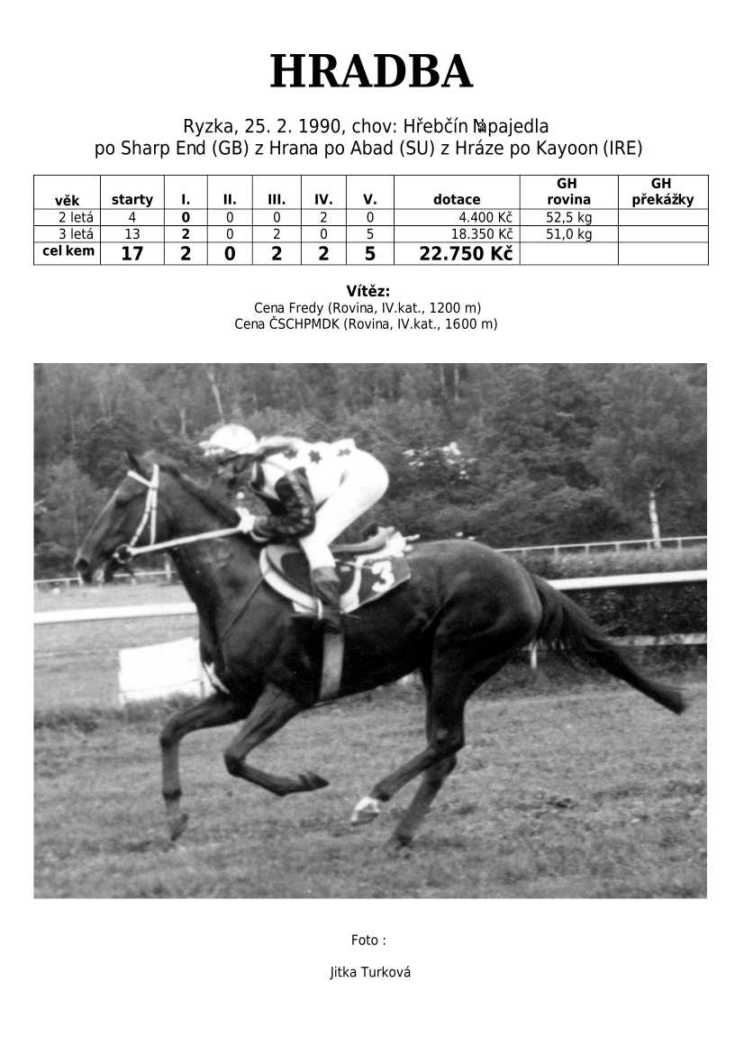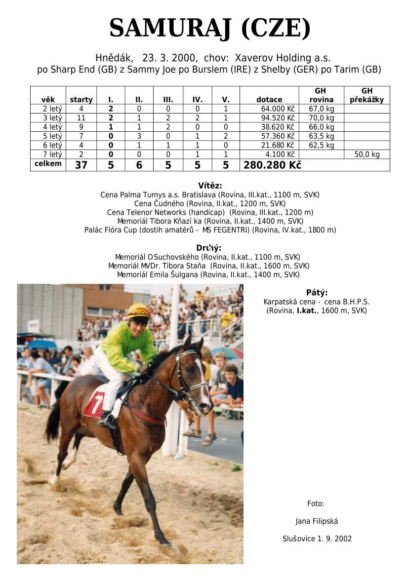HARD FIGHTER (CZE) po Tiger Cafe je českým odchovancem, který do našeho chovu vrací krev japonského super šampiona plemeníků Sunday Silence.