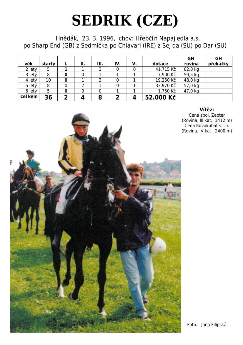 Takový miláček, jako je hrdina Velké pardubické steeplechase, SEXY LORD se u svého otce EGERTON objeví, až bude definitivně v dostihovém důchodu. Za sebe doufám, že se zcela uzdraví ze zranění a opět budeme moci bez dechu sledovat, jak se pere o vítězství. Nejen Sexy Lordovi, ale hlavně celému týmu kolem trénérky Růžičkové držím palce.