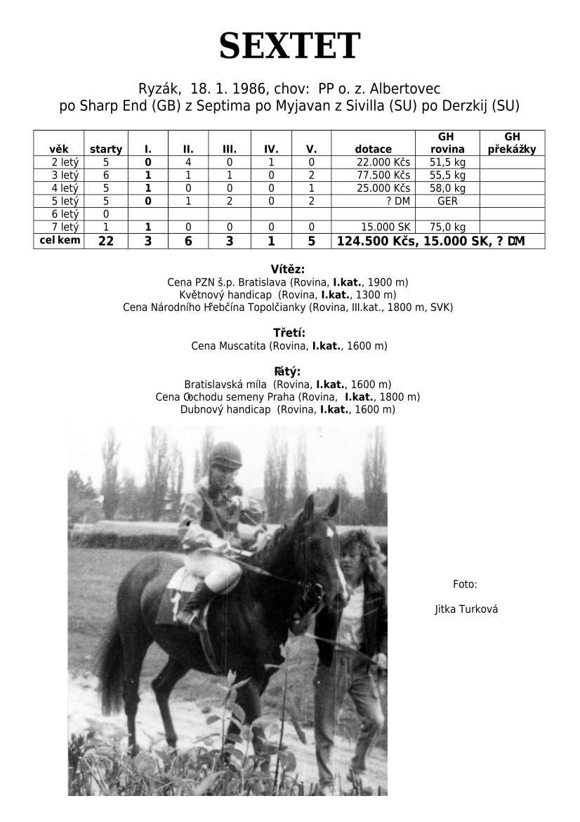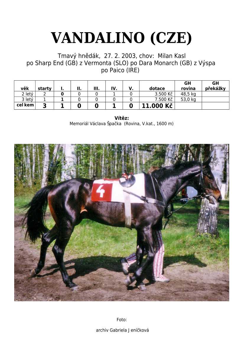 VINNING END, BRIGITKA,TAŠKÁŘ, HERBONA, VOKALÍZA, BOLEK, VANDR, SAPSHARP