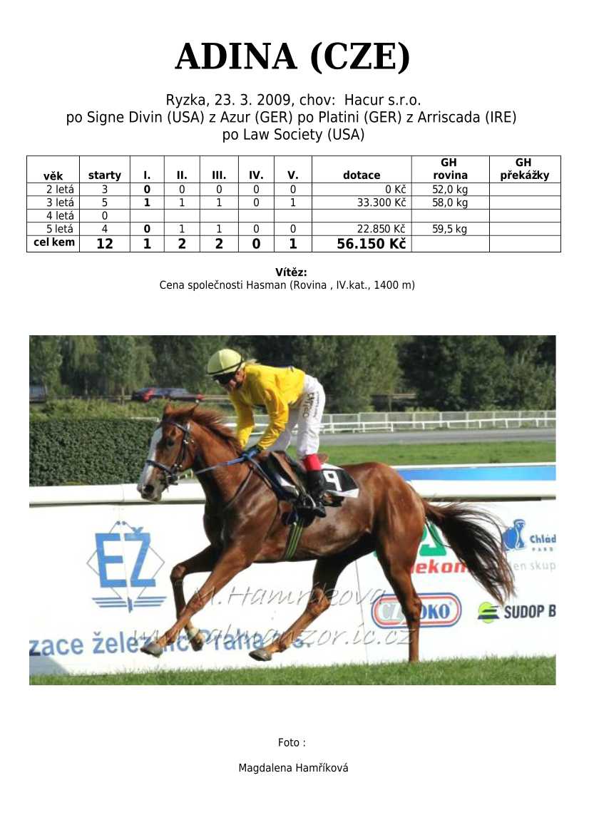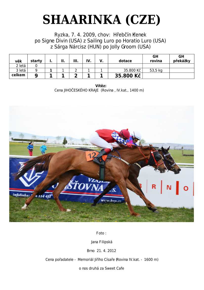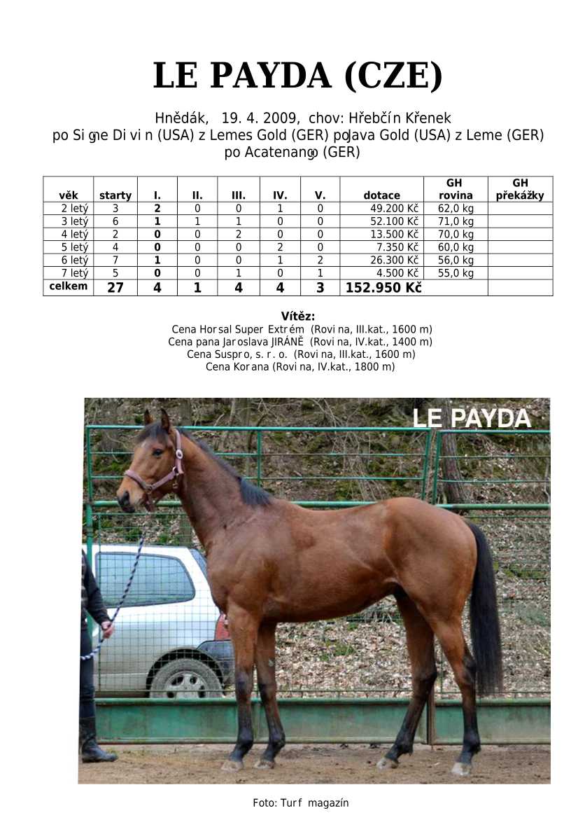 Větší využití v Polsku se najde i pro loňského novice Nagano Gold. Zda-li se po 2 letech do českého chovu vrátí, to už ukáže vývoj chovu.