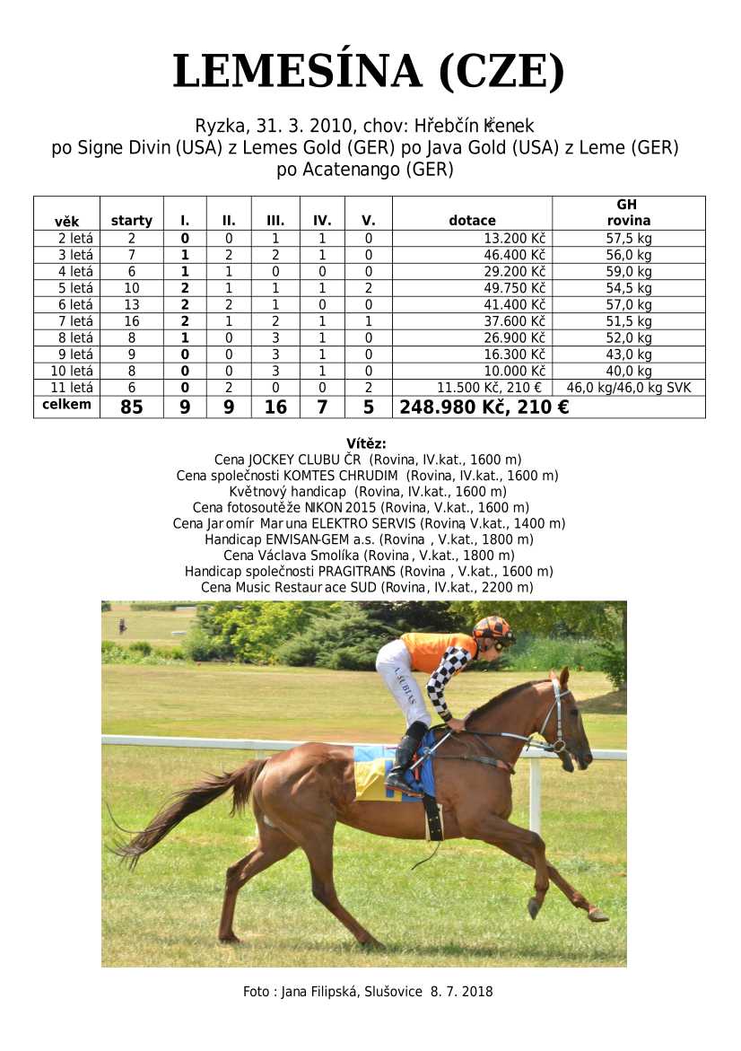 Jak je vidět, excelovali potomci již nežijících plemeníků a EGERTON opět sahá po titulu šampiona plemeníků. Všem gatuluji k úspěchům a hlavně děkuji českým chovatelům, že v této nelehké době zachraňují střípky chovu. Klesající počty chovných klisen hovoří bohužel jasnou řečí.