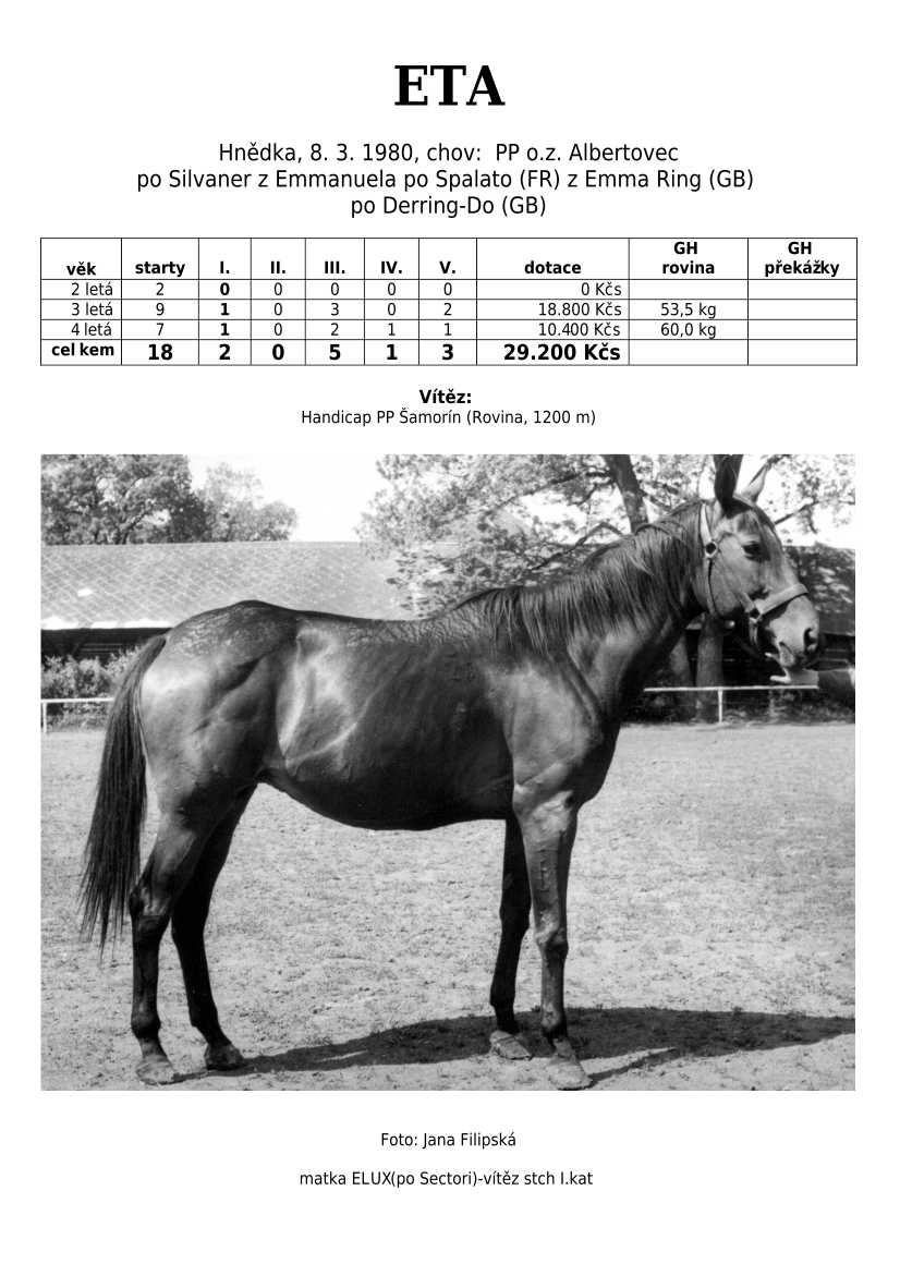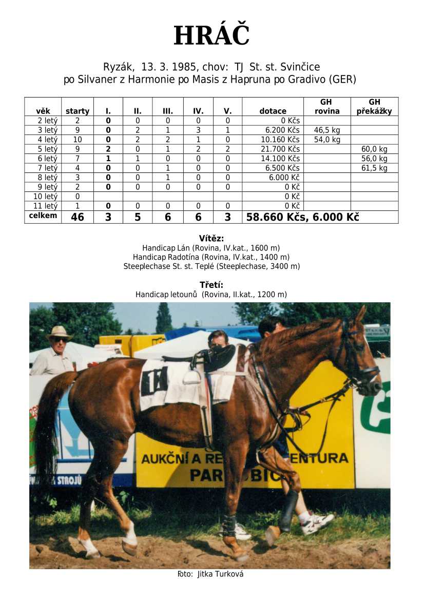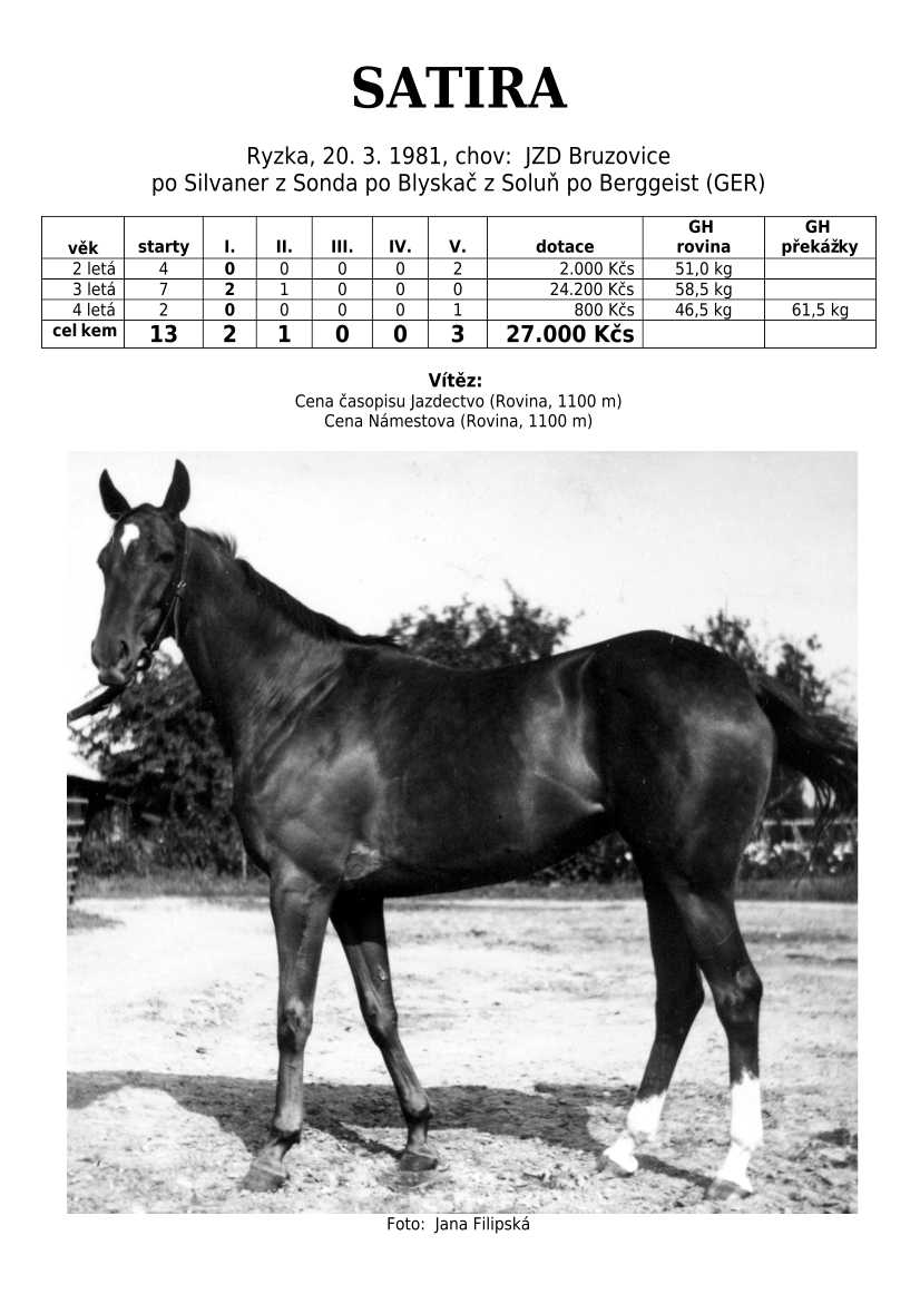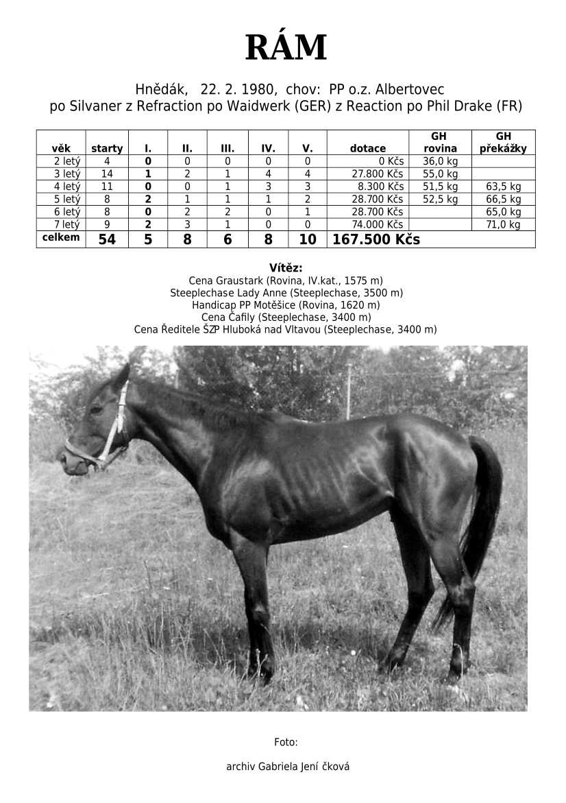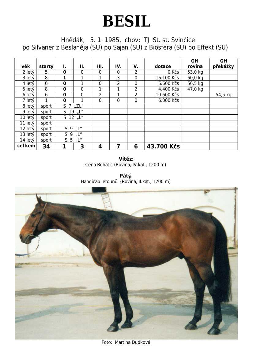 Ke konci dostihové sezóny jsem se pustila do aktualizace výsledků vítězných potomků. Každý plemeník bude mít své potomky na hlavní stránce, bez dalšího vyhledávání a klikání. Vše bude přehlednější, ale aktualizace bude z časových důvodů postupná. Přidáváni jsou potomci s ukončenou dostihovou kariérou.