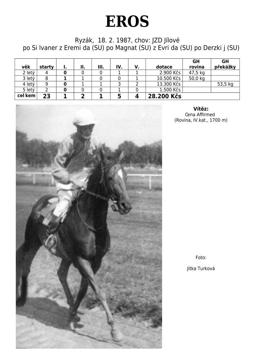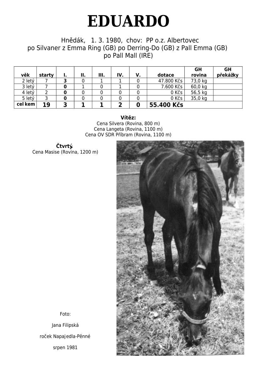 Takový miláček, jako je hrdina Velké pardubické steeplechase, SEXY LORD se u svého otce EGERTON objeví, až bude definitivně v dostihovém důchodu. Za sebe doufám, že se zcela uzdraví ze zranění a opět budeme moci bez dechu sledovat, jak se pere o vítězství. Nejen Sexy Lordovi, ale hlavně celému týmu kolem trénérky Růžičkové držím palce.