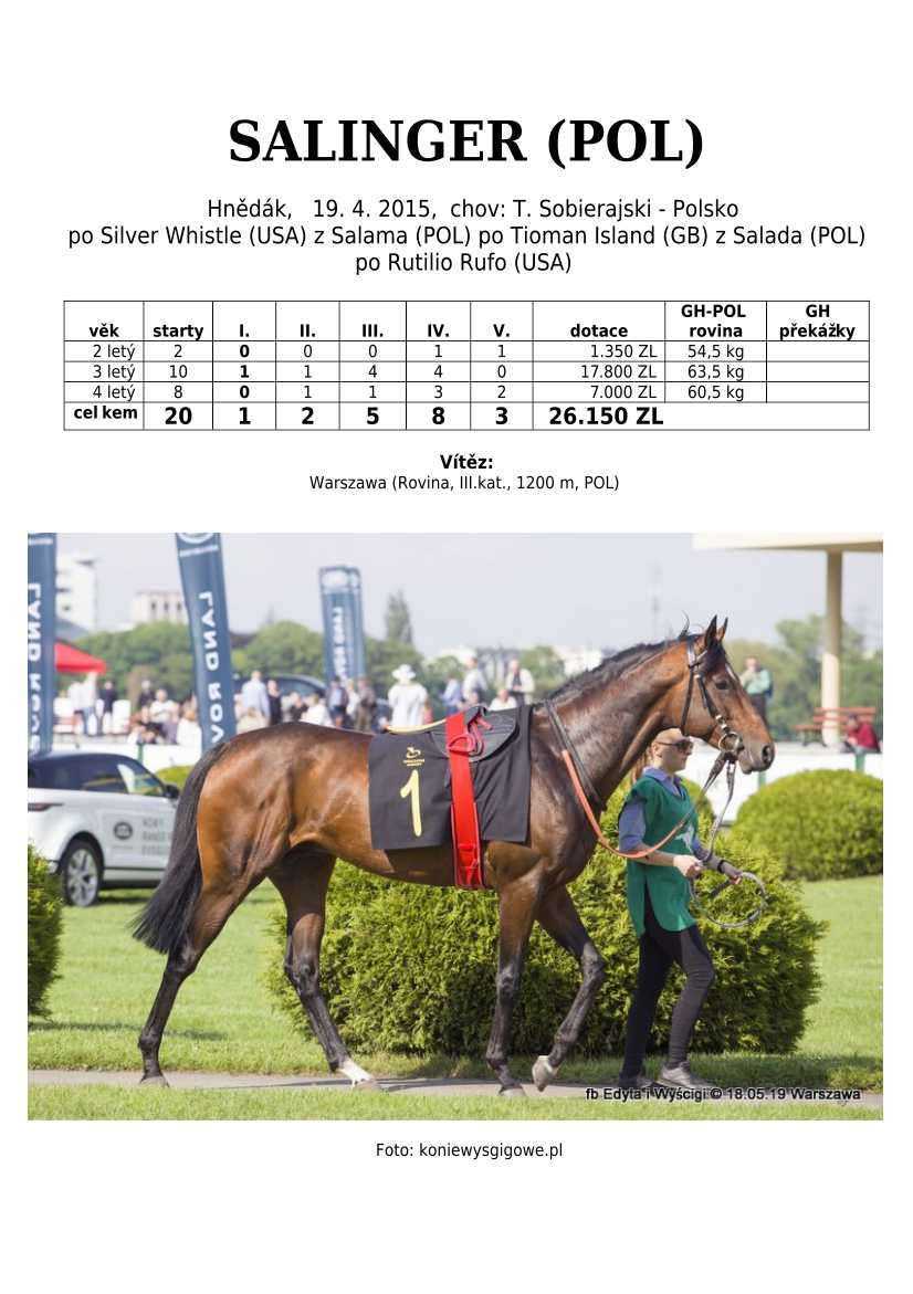 GASPARINI (Eagle Top) letos trojnásobným klasickým vítězem! Velmi úspěšná bilance pro vítěze českého i slovenského St.Leger. Po vítězství v Derby slovenském, upevnil svoji pozici. U nás sahá přinejmenším po titulu Nejlepší kůň českého chovu a na Slovensku se popere o titul Koně roku, případně nejlepšího tříletého hřebce.