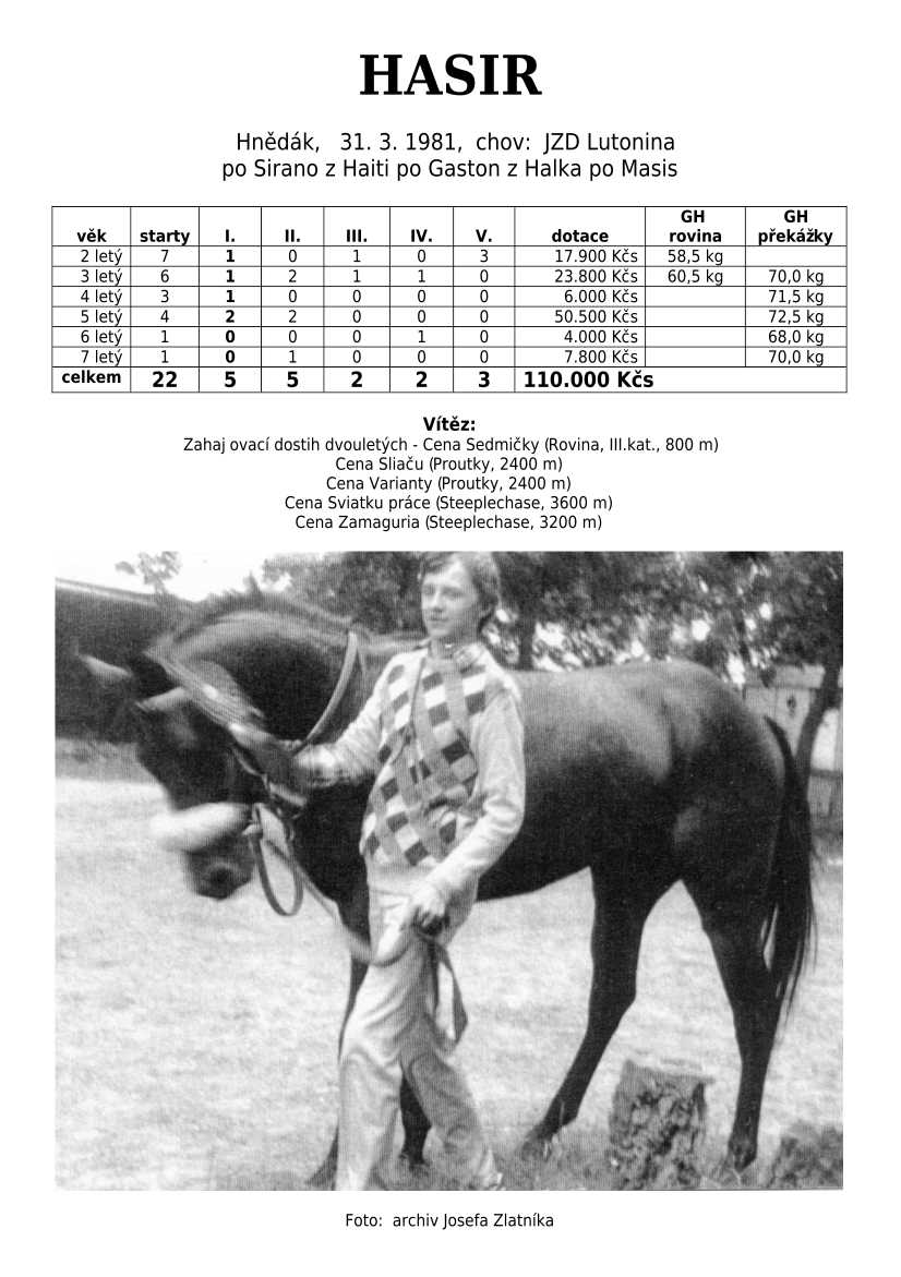 OPASAN (French Navy), trojnásobný kůň roku Slovenska, derby vítěz, listed vítěz ve Francii, držitel dalších osmi titulů.