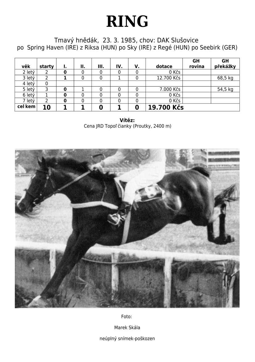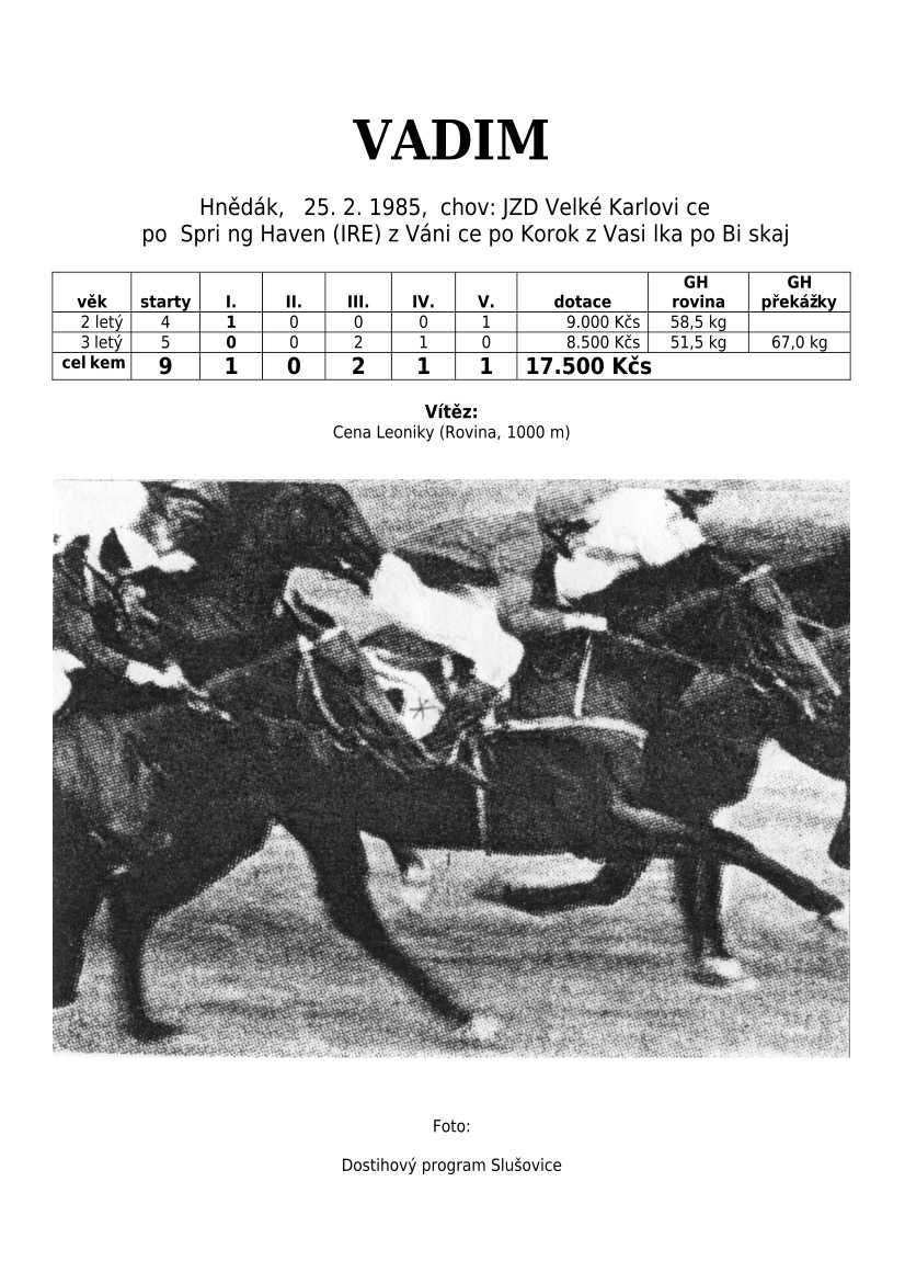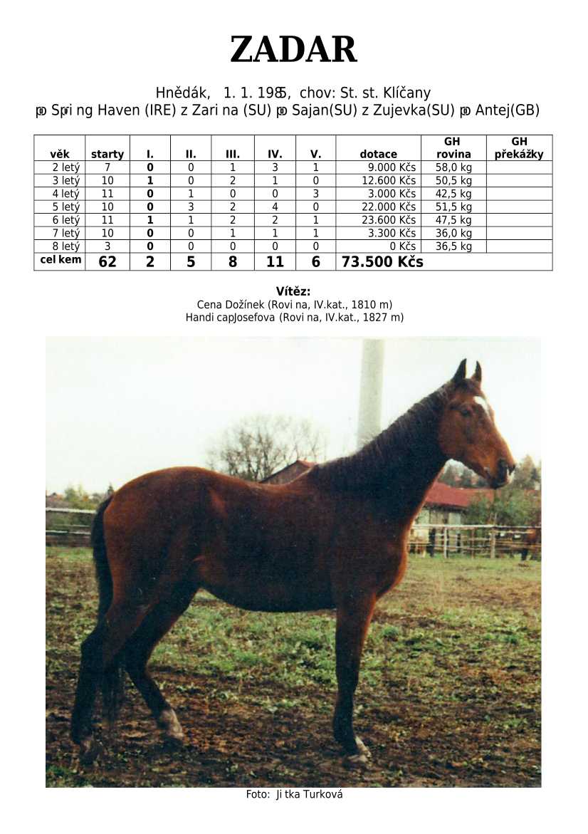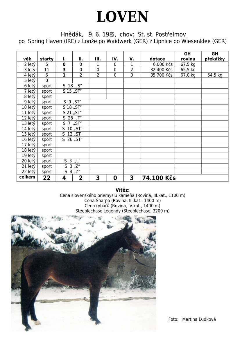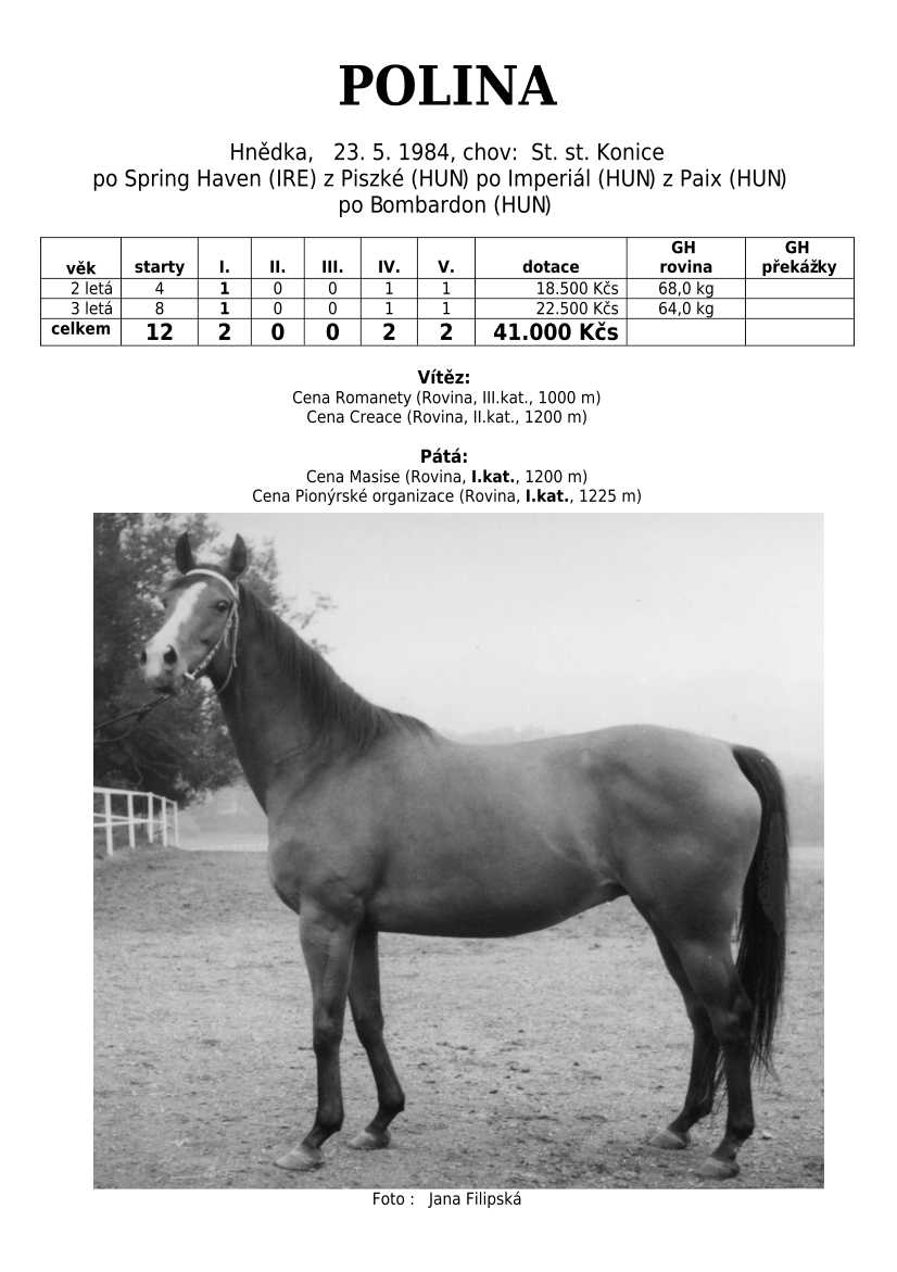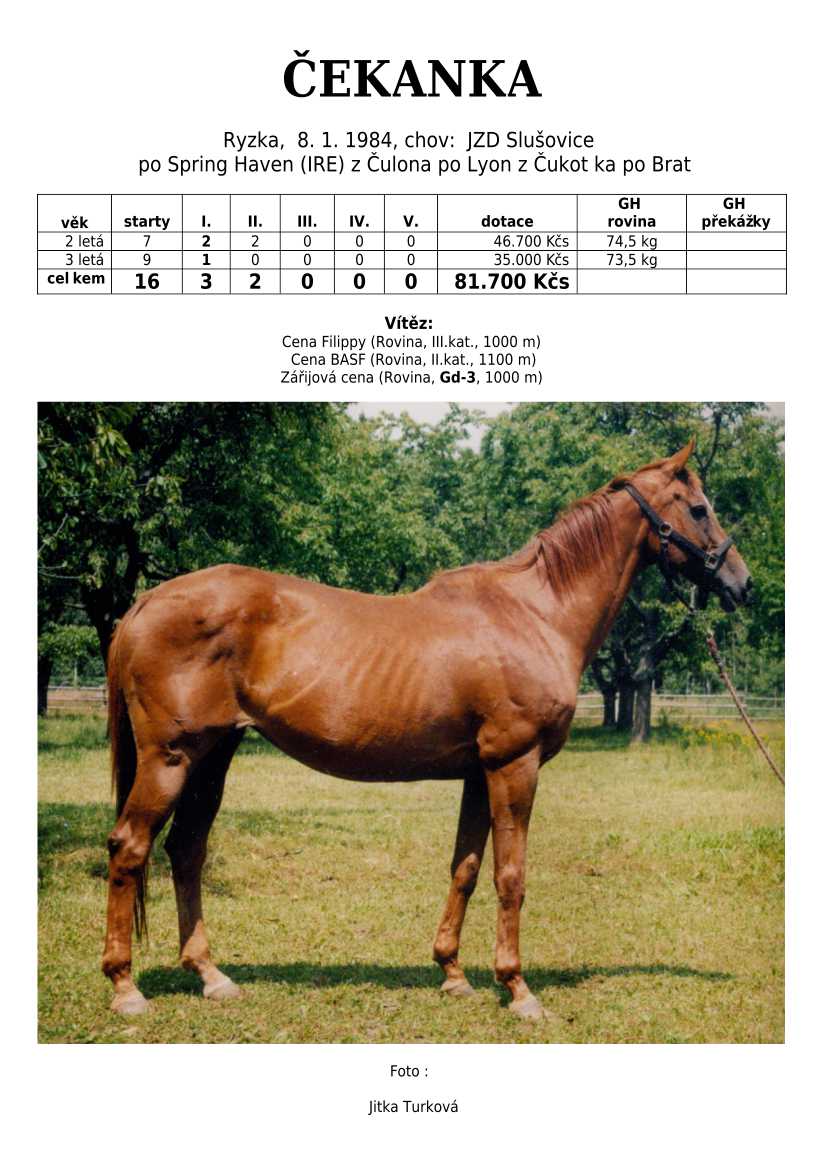 Trendem se ukazuje importování hotových koní. Stáda chovných klisen se stále tenčí, i když loňské úspěchy českých odchovanců byly excelentní, ale to už je jiná kapitola...