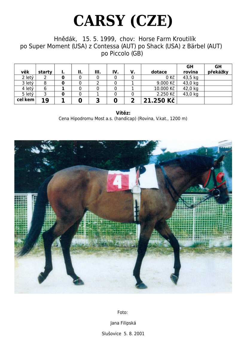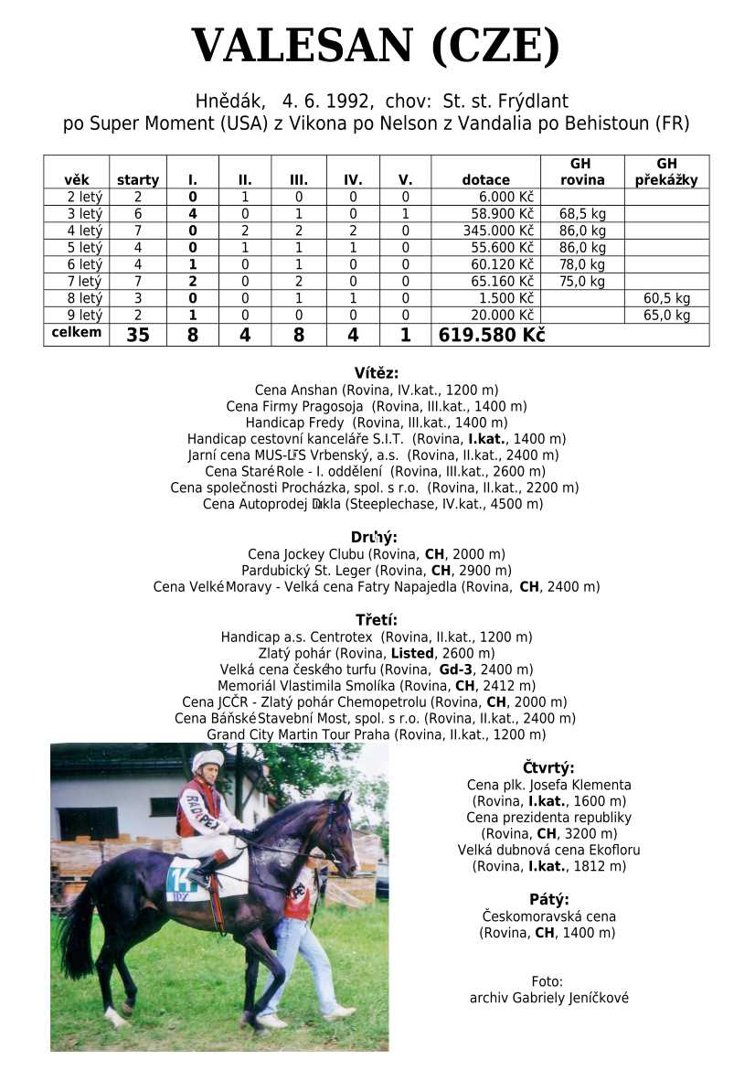 Trendem se ukazuje importování hotových koní. Stáda chovných klisen se stále tenčí, i když loňské úspěchy českých odchovanců byly excelentní, ale to už je jiná kapitola...