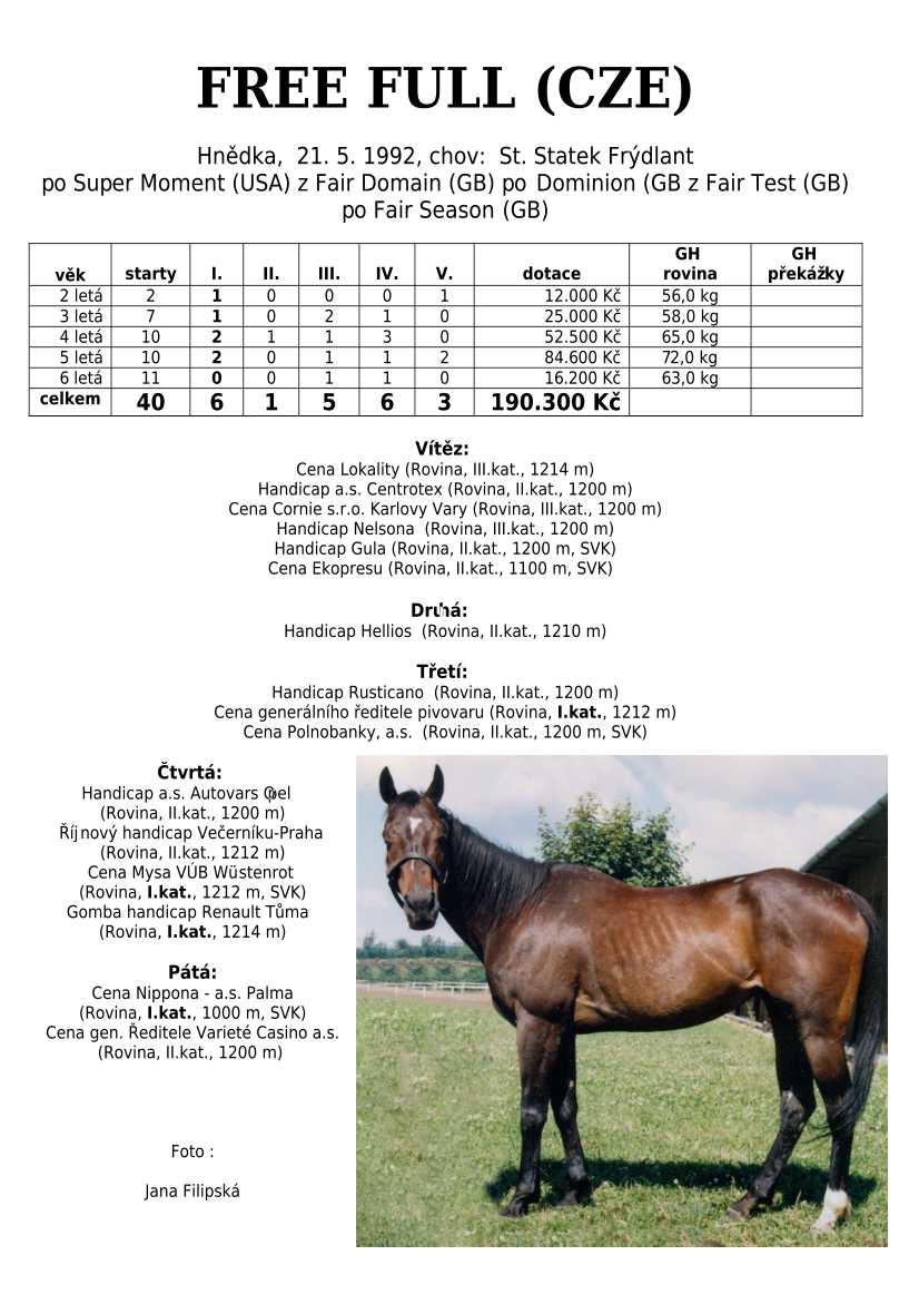HARD FIGHTER (CZE) po Tiger Cafe je českým odchovancem, který do našeho chovu vrací krev japonského super šampiona plemeníků Sunday Silence.
