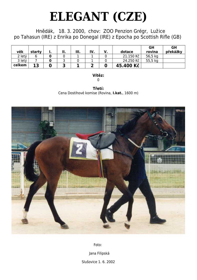 GASPARINI (Eagle Top) letos trojnásobným klasickým vítězem! Velmi úspěšná bilance pro vítěze českého i slovenského St.Leger. Po vítězství v Derby slovenském, upevnil svoji pozici. U nás sahá přinejmenším po titulu Nejlepší kůň českého chovu a na Slovensku se popere o titul Koně roku, případně nejlepšího tříletého hřebce.