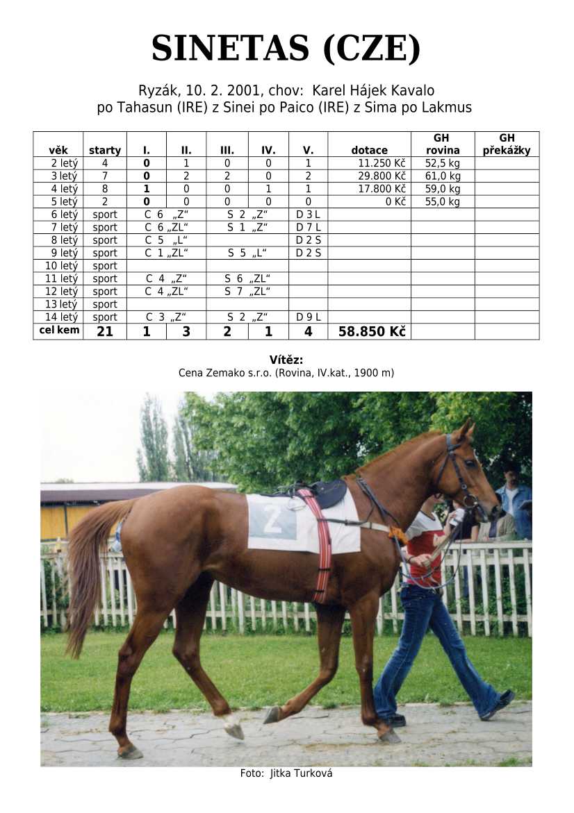 HARD FIGHTER (CZE) po Tiger Cafe je českým odchovancem, který do našeho chovu vrací krev japonského super šampiona plemeníků Sunday Silence.
