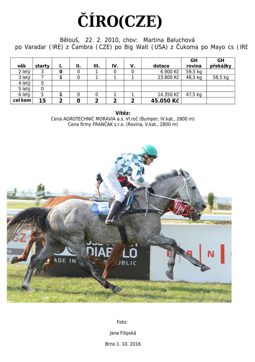 Velká gratulace chovateli i celému přípravnému týmu. Úžasný výkon!