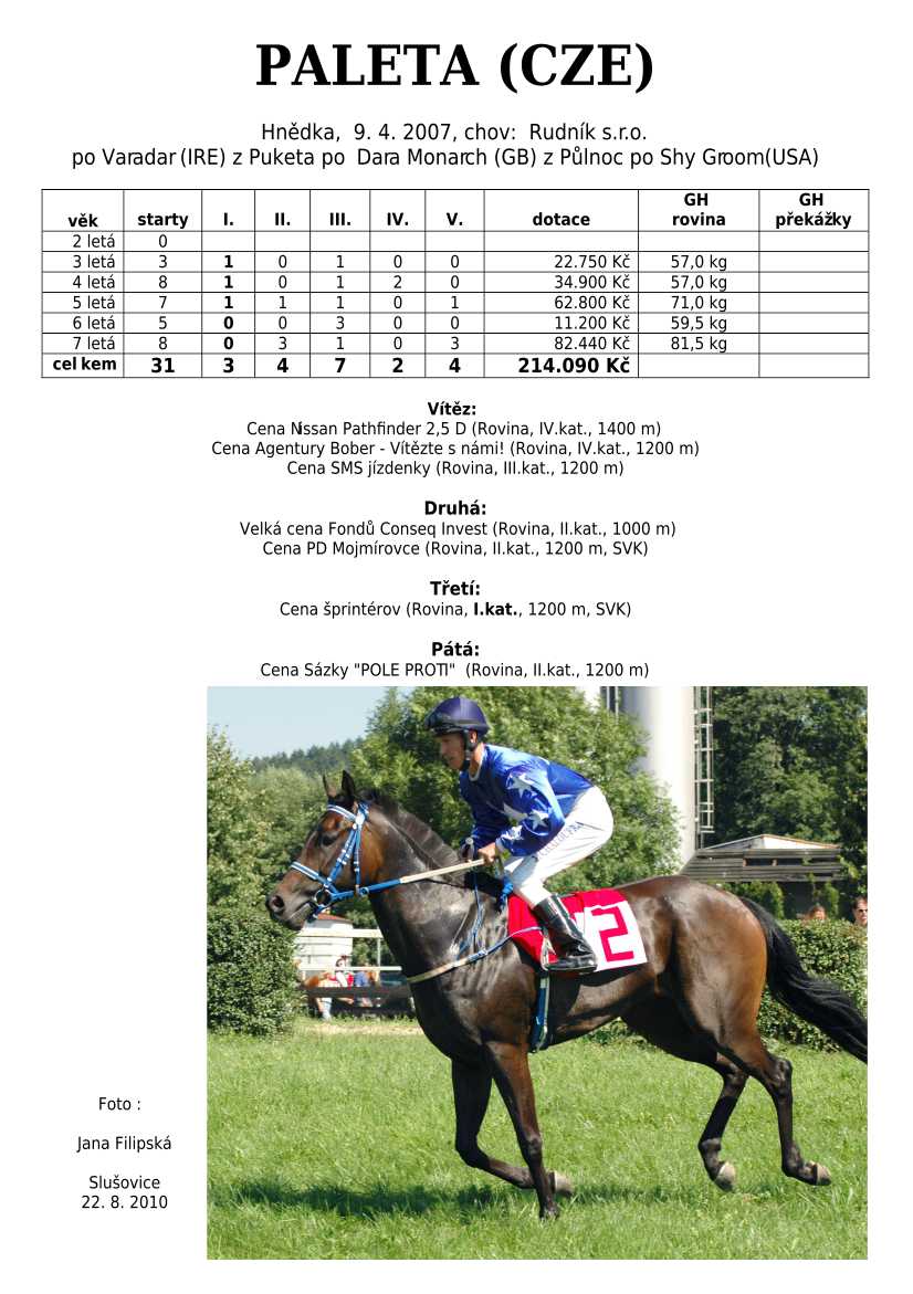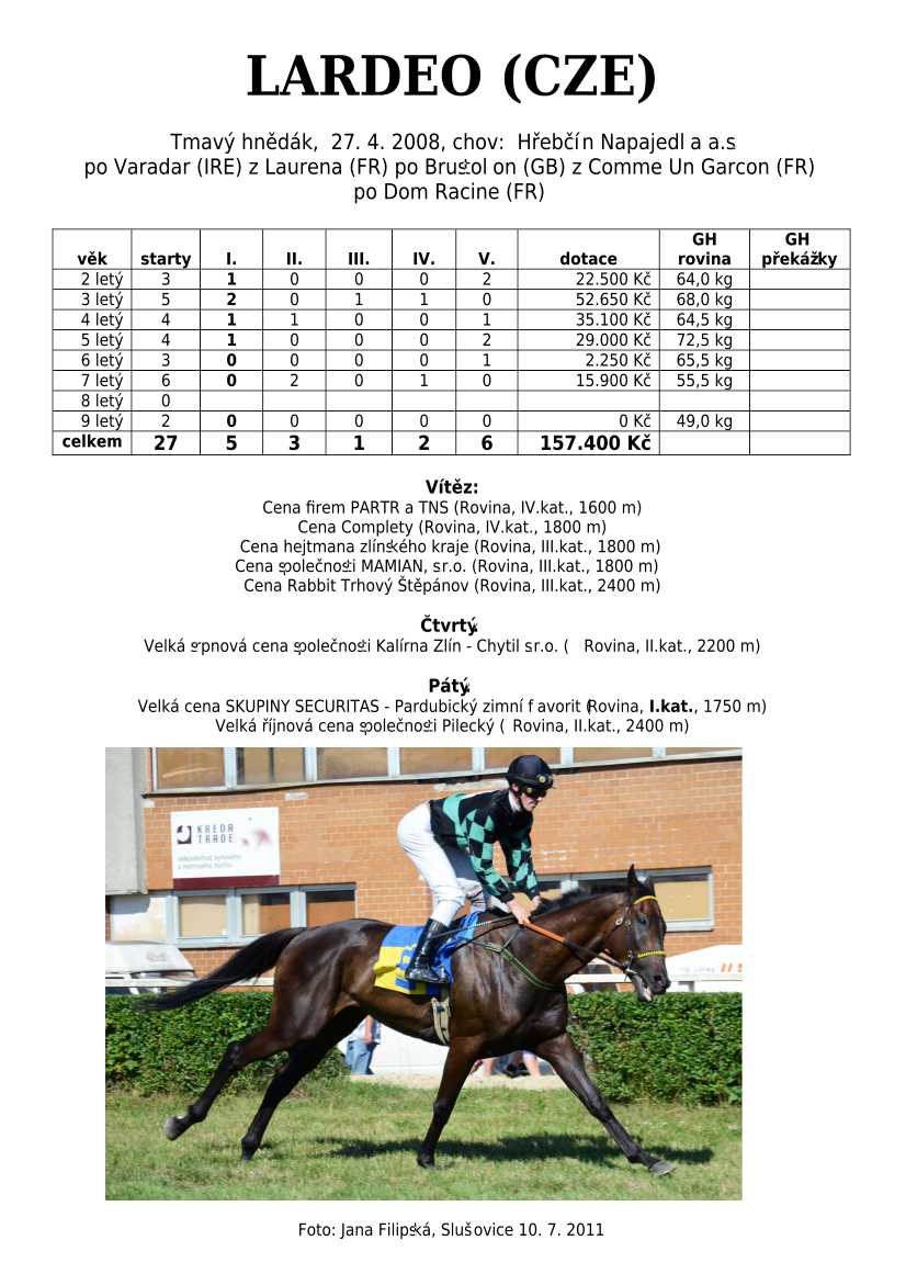 GASPARINI (Eagle Top) letos trojnásobným klasickým vítězem! Velmi úspěšná bilance pro vítěze českého i slovenského St.Leger. Po vítězství v Derby slovenském, upevnil svoji pozici. U nás sahá přinejmenším po titulu Nejlepší kůň českého chovu a na Slovensku se popere o titul Koně roku, případně nejlepšího tříletého hřebce.