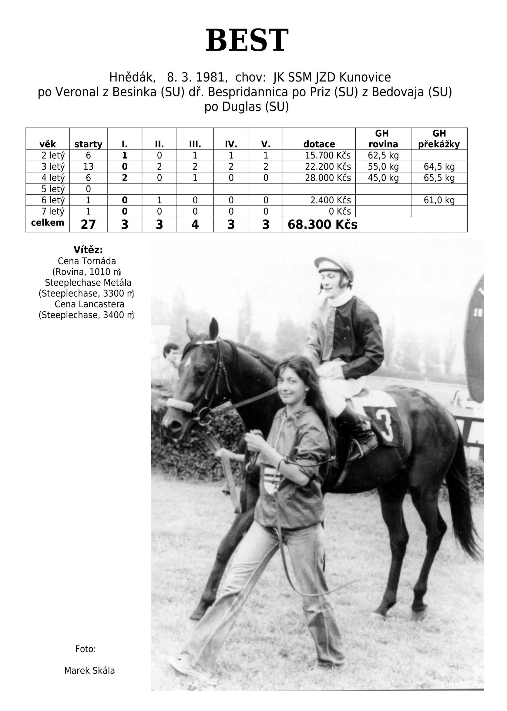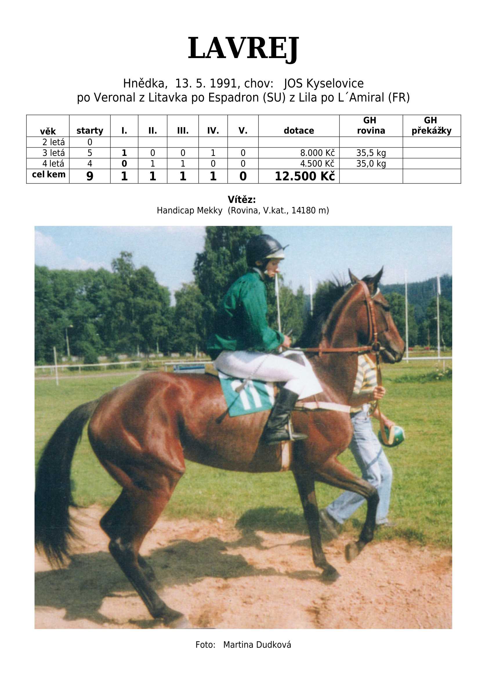Takový miláček, jako je hrdina Velké pardubické steeplechase, SEXY LORD se u svého otce EGERTON objeví, až bude definitivně v dostihovém důchodu. Za sebe doufám, že se zcela uzdraví ze zranění a opět budeme moci bez dechu sledovat, jak se pere o vítězství. Nejen Sexy Lordovi, ale hlavně celému týmu kolem trénérky Růžičkové držím palce.