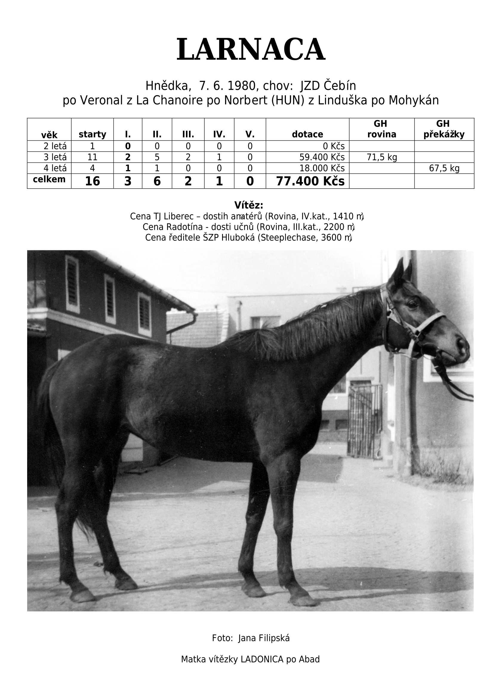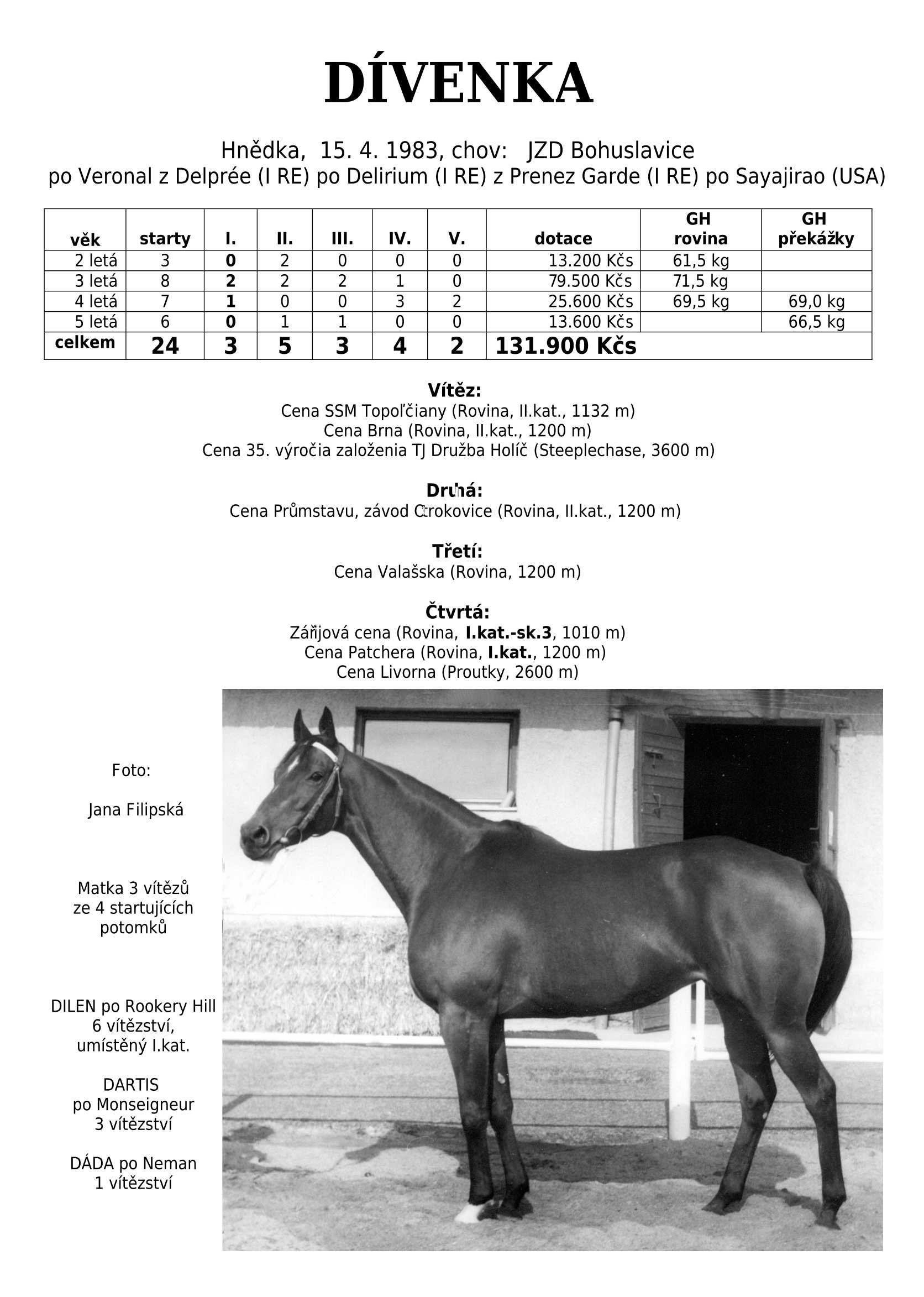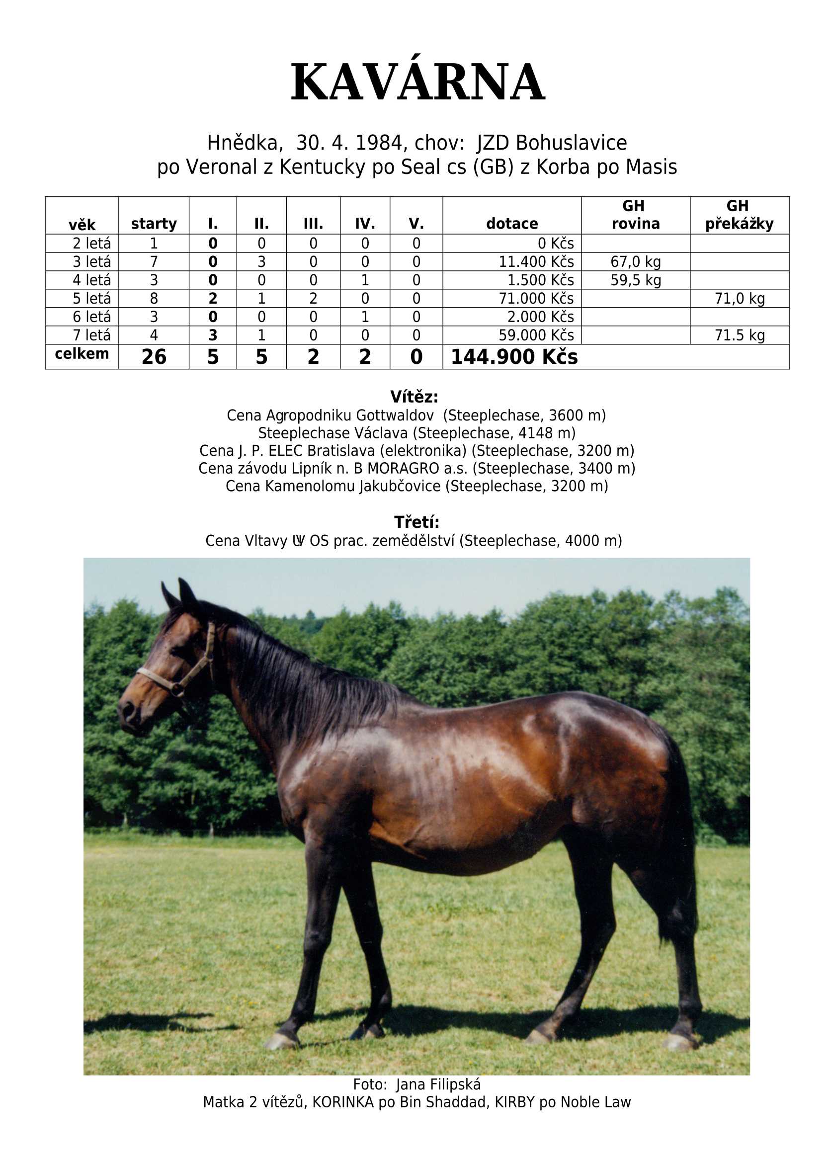 Ke konci dostihové sezóny jsem se pustila do aktualizace výsledků vítězných potomků. Každý plemeník bude mít své potomky na hlavní stránce, bez dalšího vyhledávání a klikání. Vše bude přehlednější, ale aktualizace bude z časových důvodů postupná. Přidáváni jsou potomci s ukončenou dostihovou kariérou.
