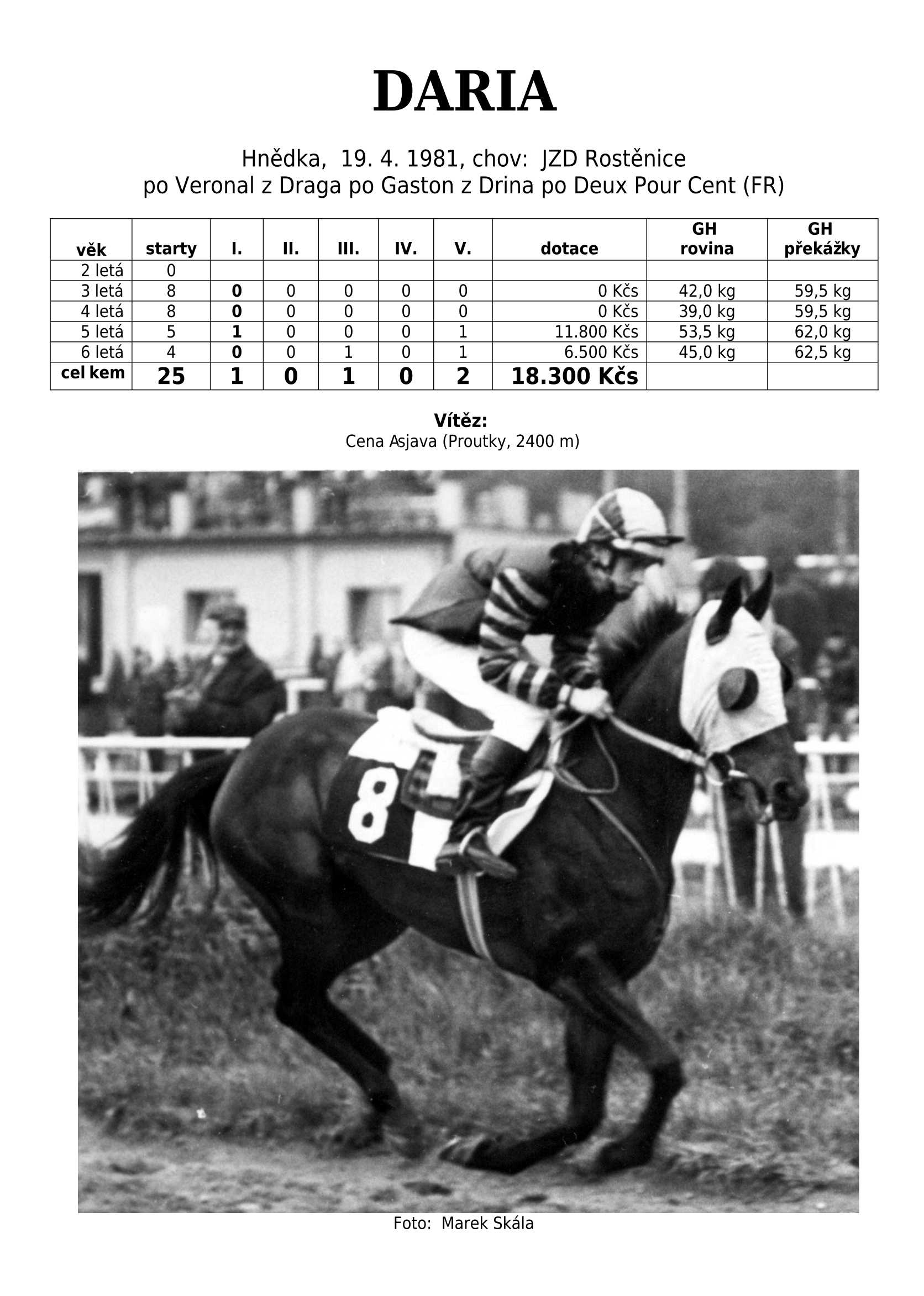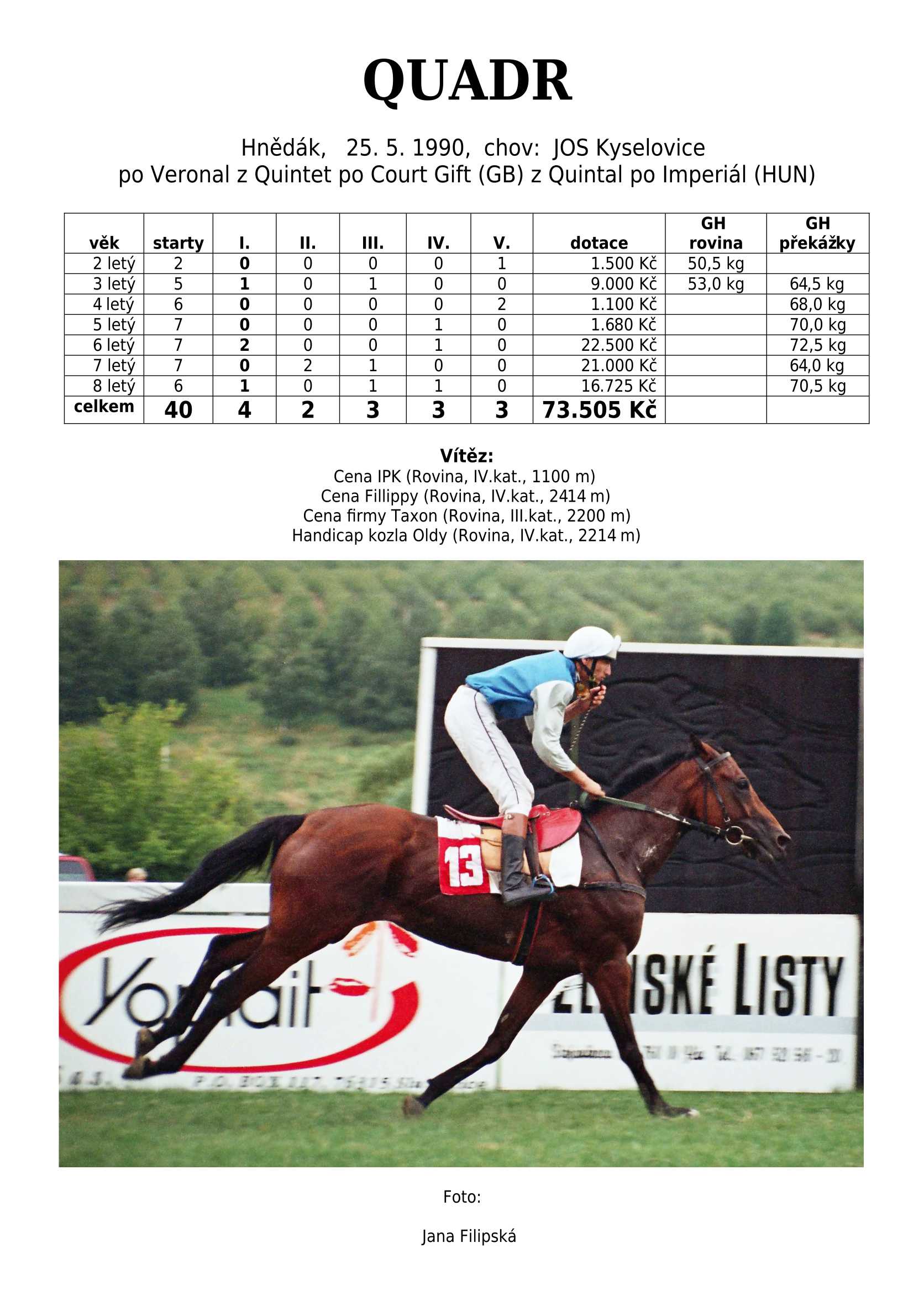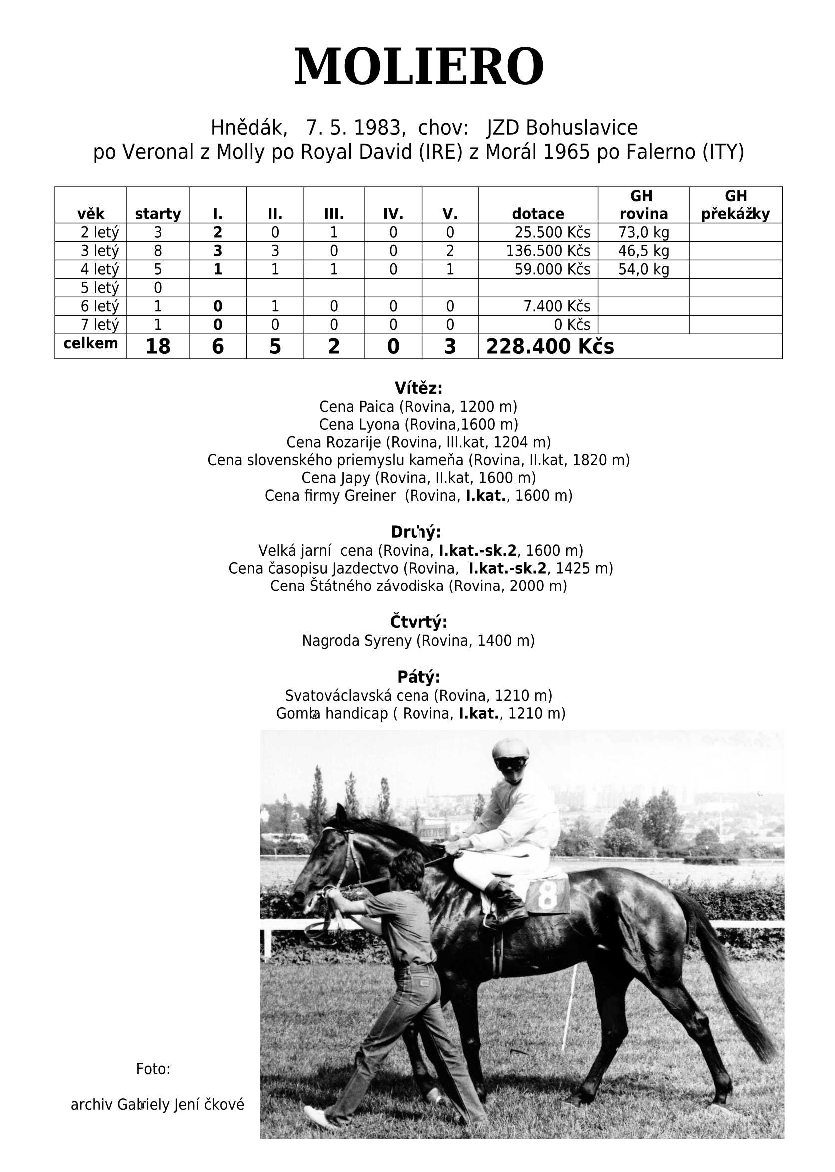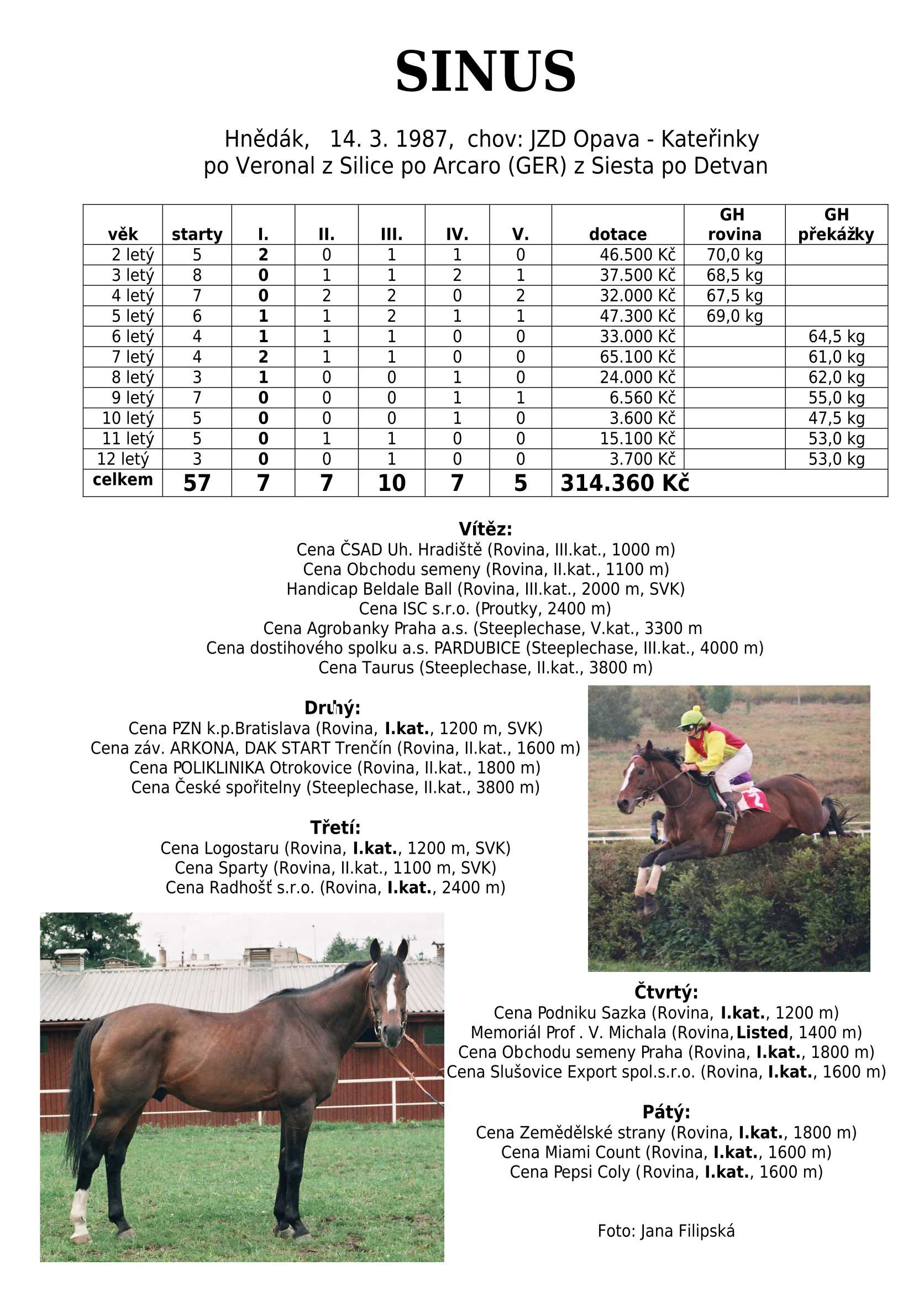 Ke konci dostihové sezóny jsem se pustila do aktualizace výsledků vítězných potomků. Každý plemeník bude mít své potomky na hlavní stránce, bez dalšího vyhledávání a klikání. Vše bude přehlednější, ale aktualizace bude z časových důvodů postupná. Přidáváni jsou potomci s ukončenou dostihovou kariérou.