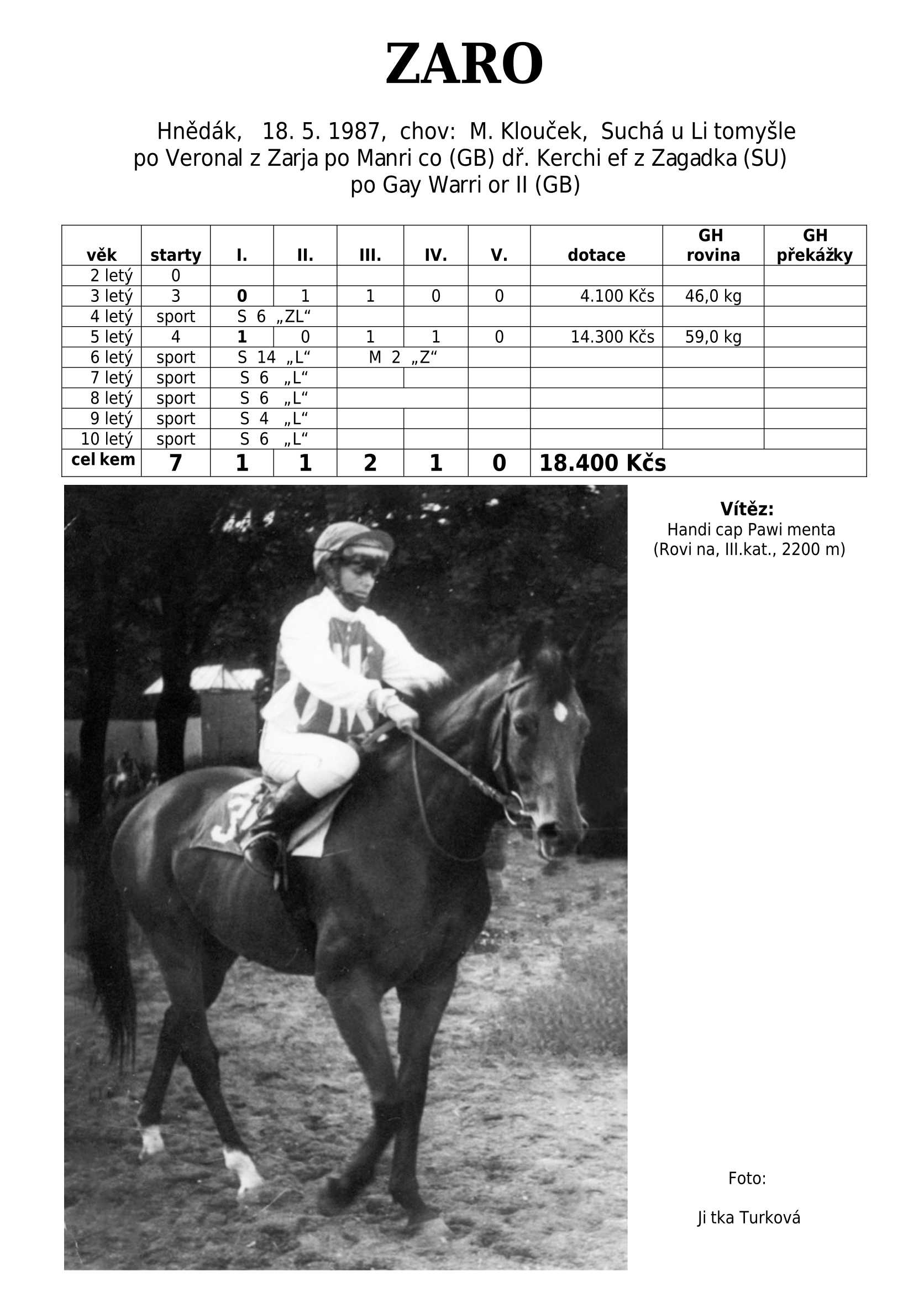 Trendem se ukazuje importování hotových koní. Stáda chovných klisen se stále tenčí, i když loňské úspěchy českých odchovanců byly excelentní, ale to už je jiná kapitola...