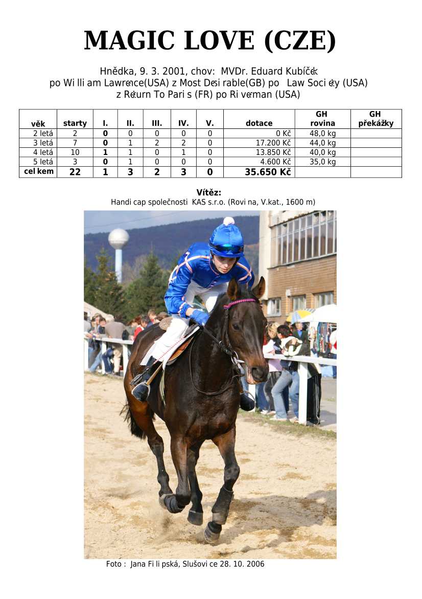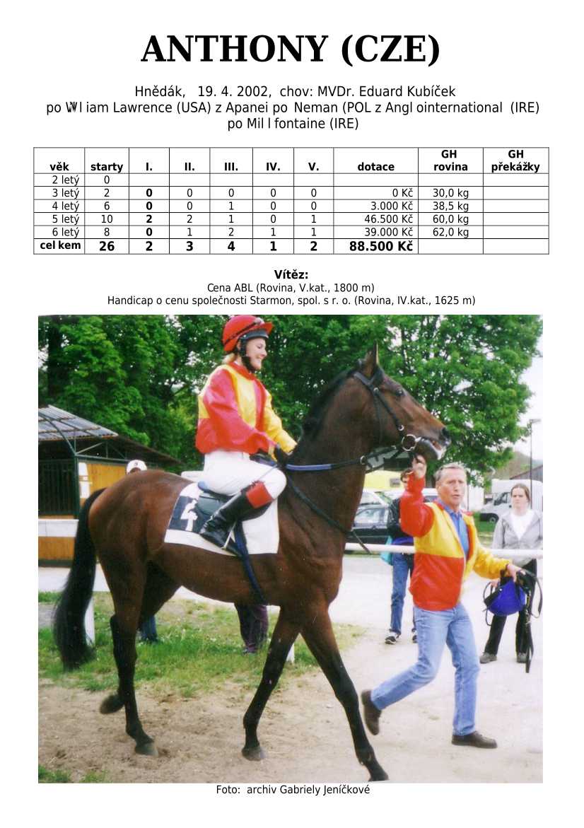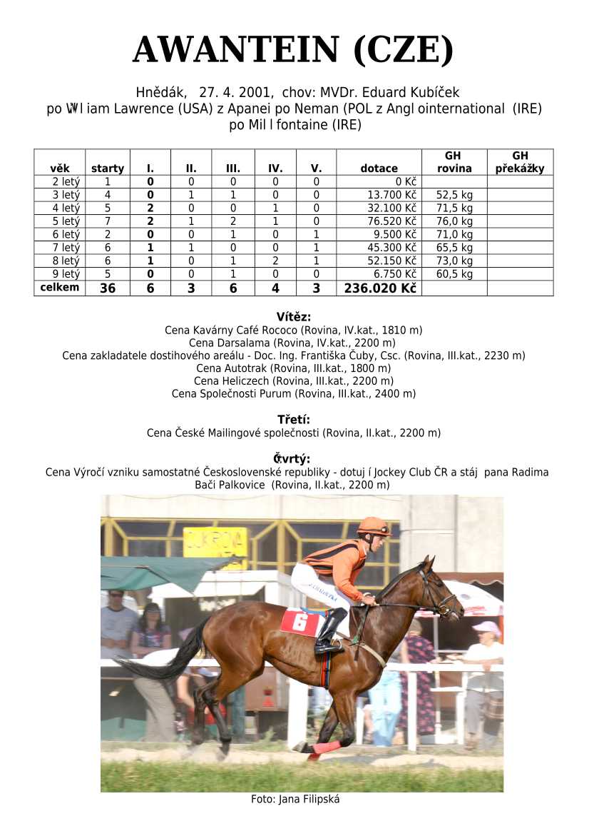 Trendem se ukazuje importování hotových koní. Stáda chovných klisen se stále tenčí, i když loňské úspěchy českých odchovanců byly excelentní, ale to už je jiná kapitola...