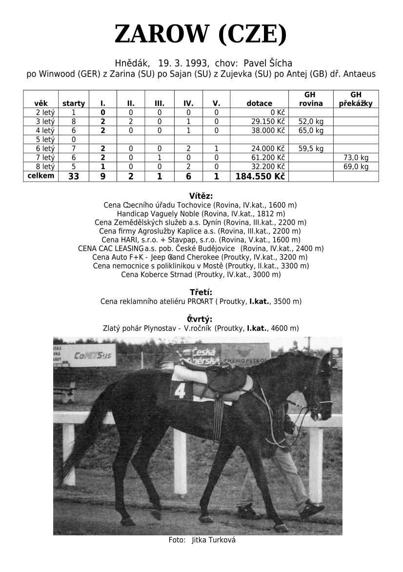 Trendem se ukazuje importování hotových koní. Stáda chovných klisen se stále tenčí, i když loňské úspěchy českých odchovanců byly excelentní, ale to už je jiná kapitola...