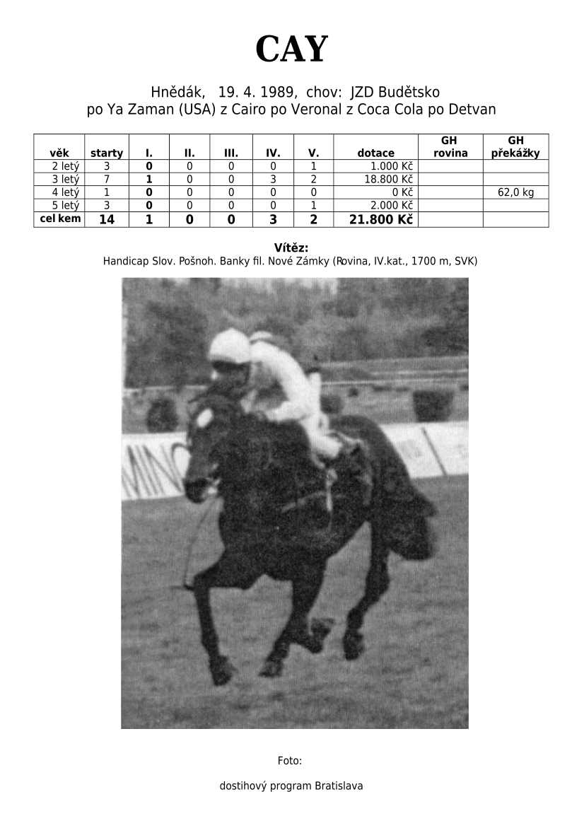 Trendem se ukazuje importování hotových koní. Stáda chovných klisen se stále tenčí, i když loňské úspěchy českých odchovanců byly excelentní, ale to už je jiná kapitola...