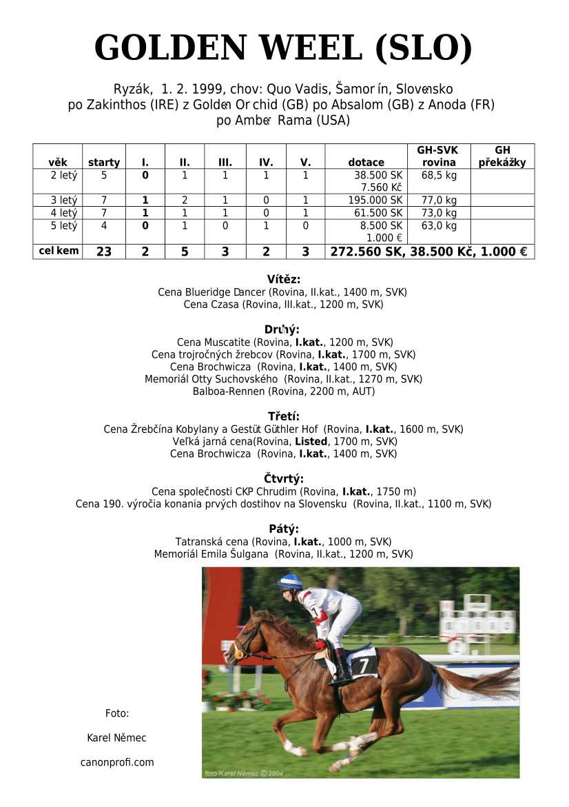 GASPARINI (Eagle Top) letos trojnásobným klasickým vítězem! Velmi úspěšná bilance pro vítěze českého i slovenského St.Leger. Po vítězství v Derby slovenském, upevnil svoji pozici. U nás sahá přinejmenším po titulu Nejlepší kůň českého chovu a na Slovensku se popere o titul Koně roku, případně nejlepšího tříletého hřebce.