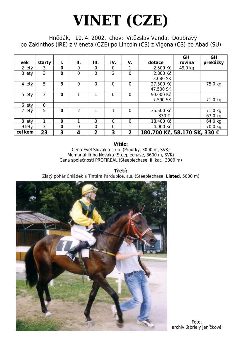 Trendem se ukazuje importování hotových koní. Stáda chovných klisen se stále tenčí, i když loňské úspěchy českých odchovanců byly excelentní, ale to už je jiná kapitola...